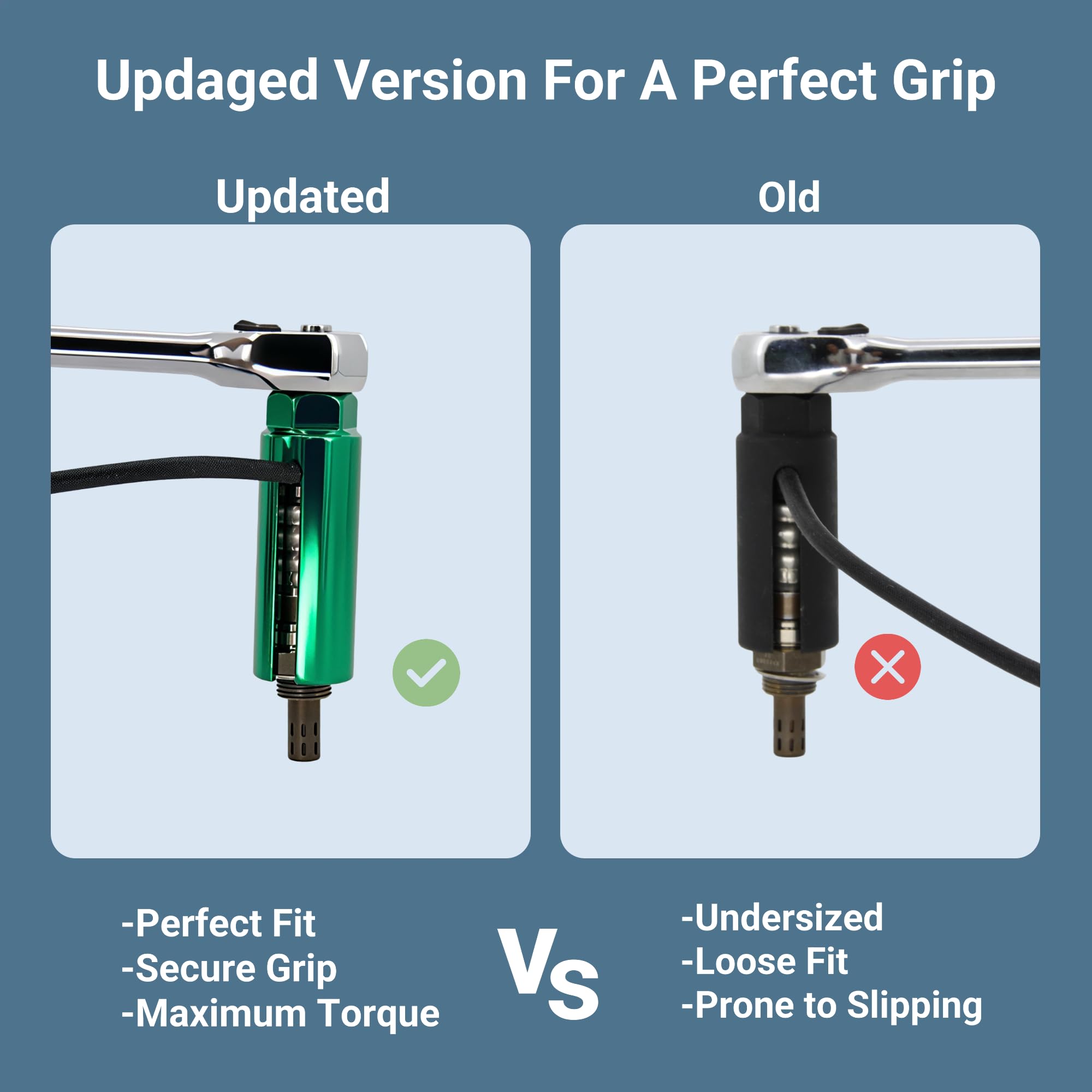 Design: This oxygen sensor wrench features a new paint design. Compared to the traditional black finish, the new green coating gives the entire product a more stylish appearance. While enhancing the product's aesthetic appeal, the new red paint also effectively addresses issues of rust and corrosion.