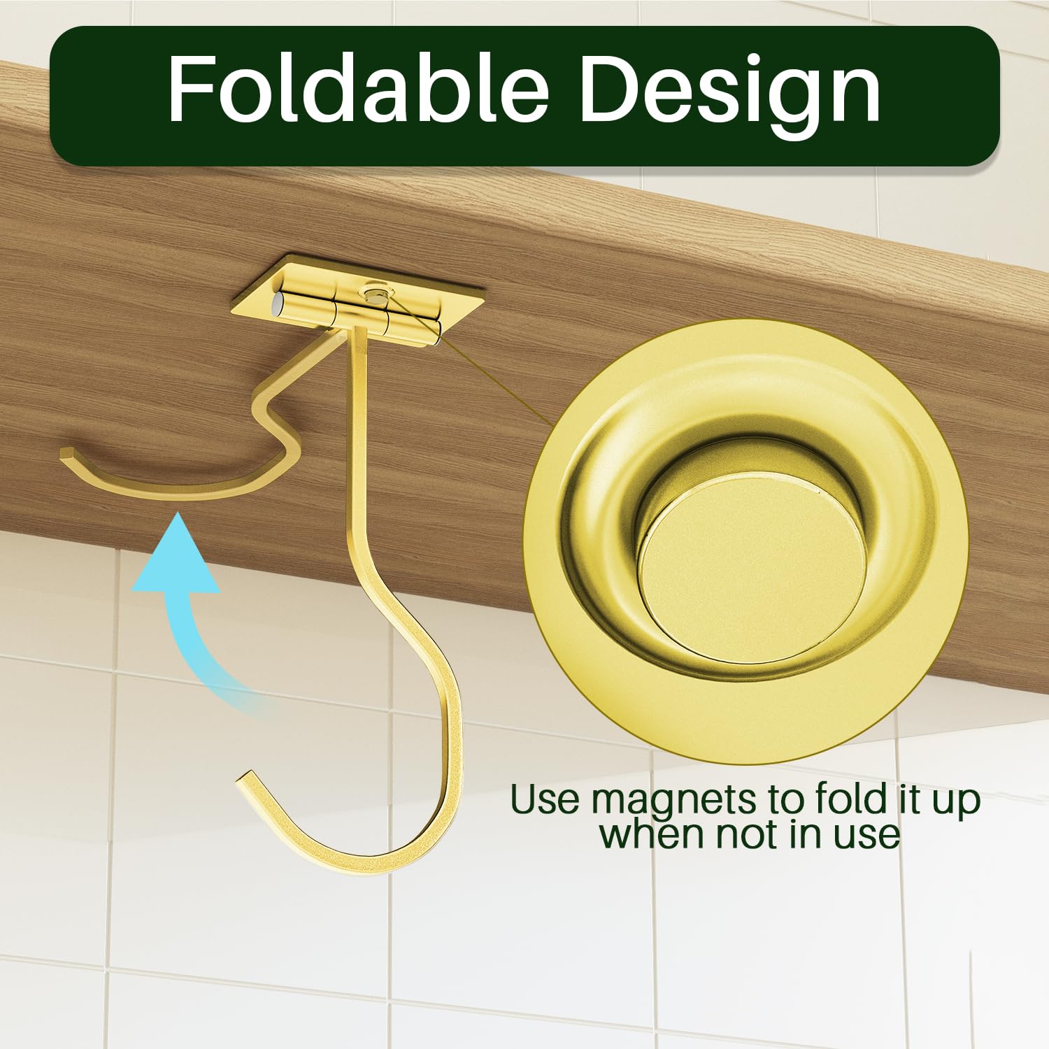 Space-Saving Foldable Design: Features two built-in magnets that let you neatly fold the hook away when not in use—keeping your kitchen clutter-free and stylish.