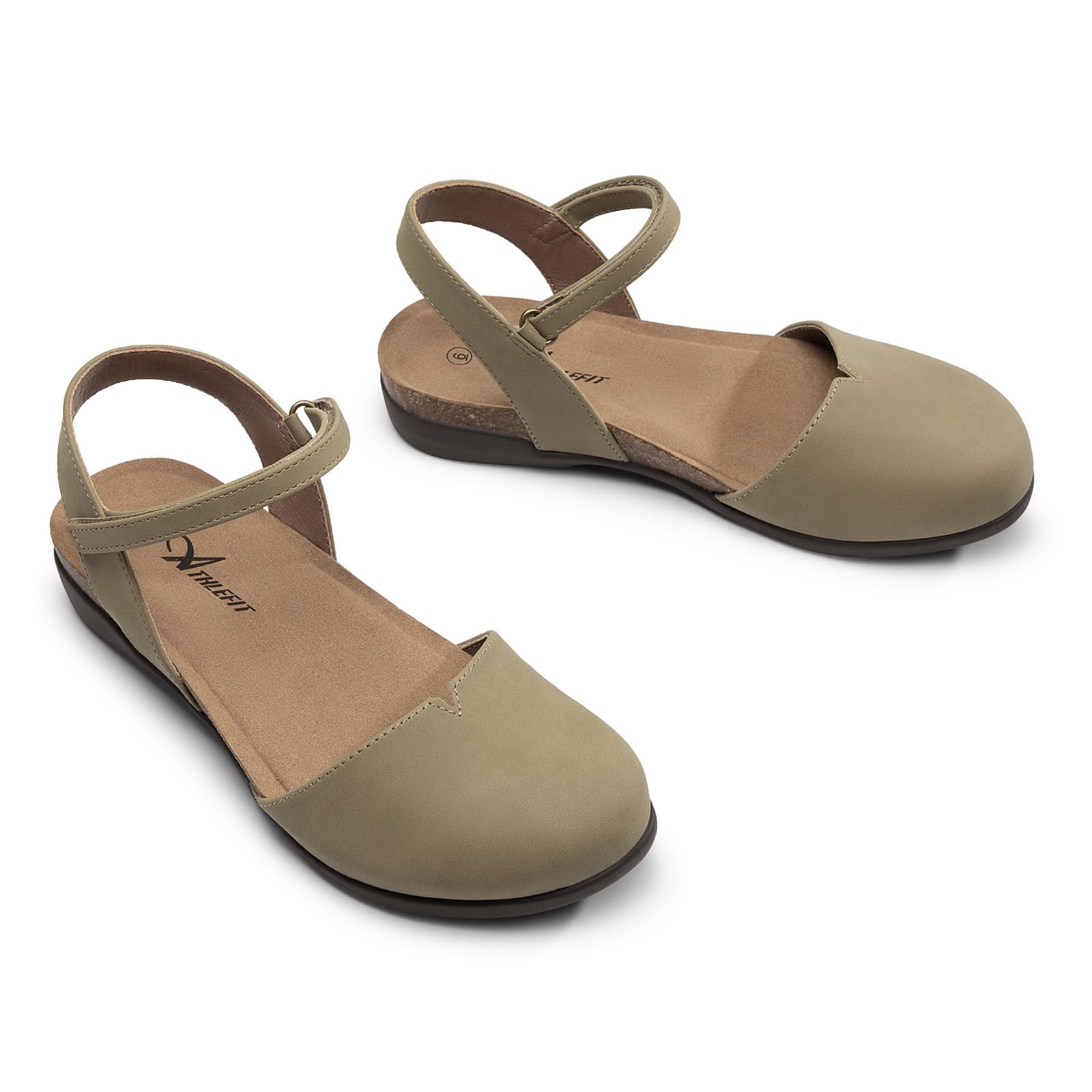 Material: Women's closed toe sandals are made with smooth leather upper and TPR non-slip soles, providing stability and comfort with every step.