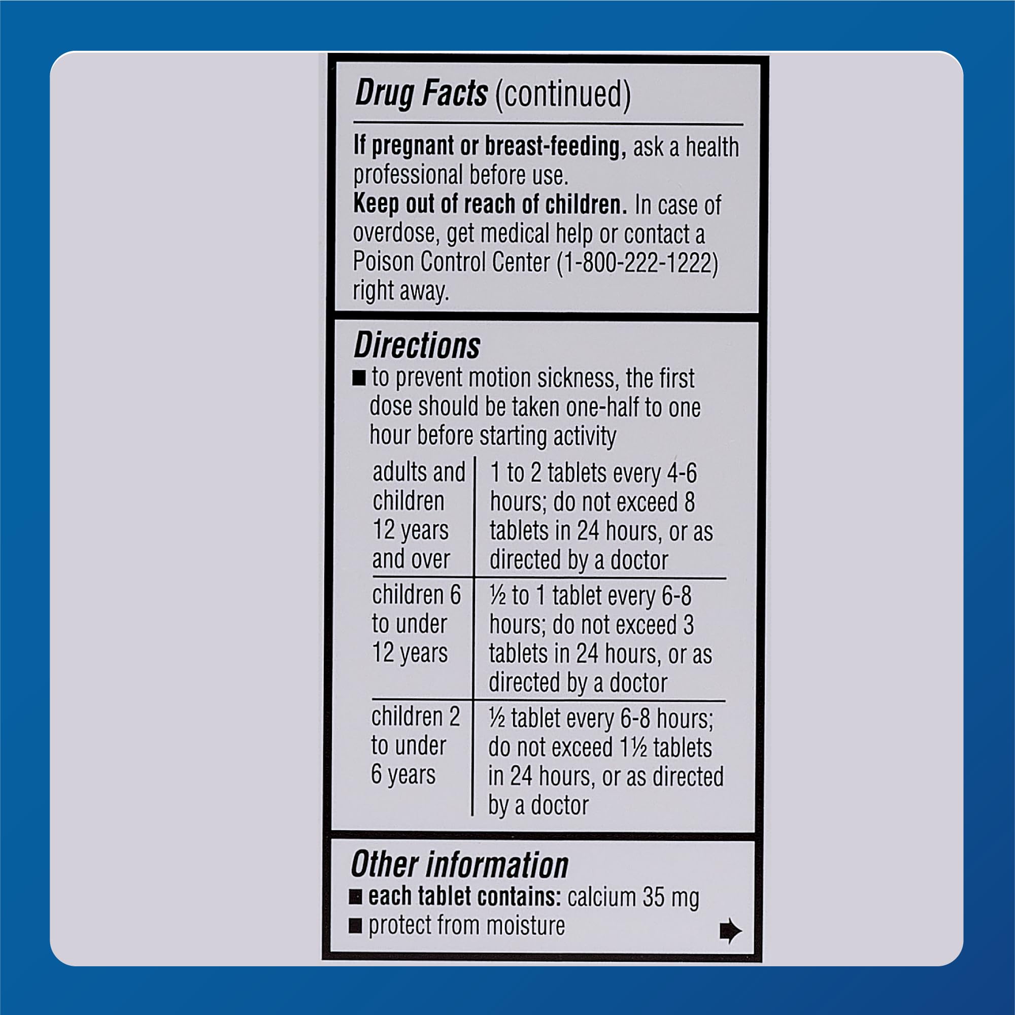 QUALITY FORMULATION: We maintain high standards of care through strict regulatory compliance to deliver carefully formulated, effective motion sickness medication. With a 50 mg dimenhydrinate formula, these tablets help to quickly relieve most nausea symptoms.