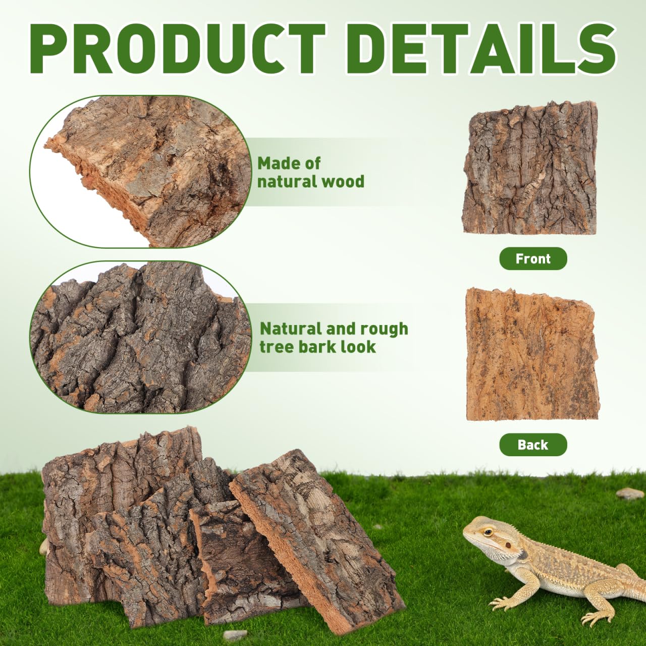 Natural Organic Cork Bark: Sourced from real tree bark, our cork bark for reptiles offers an authentic forest feel. This organic wood is chemical-free and safe for sensitive amphibians and reptiles, providing a sustainable habitat decoration that mimics their natural environment in the wild