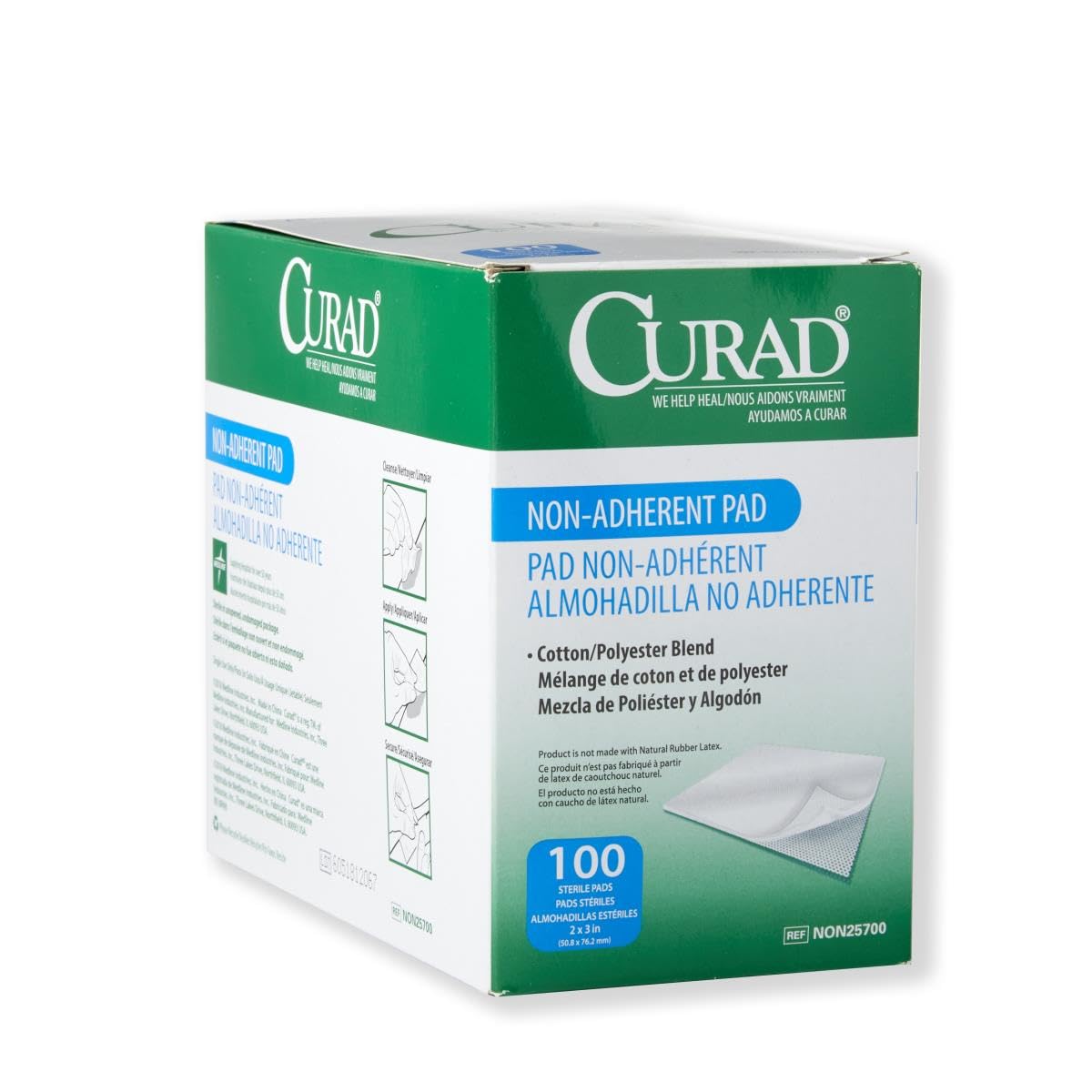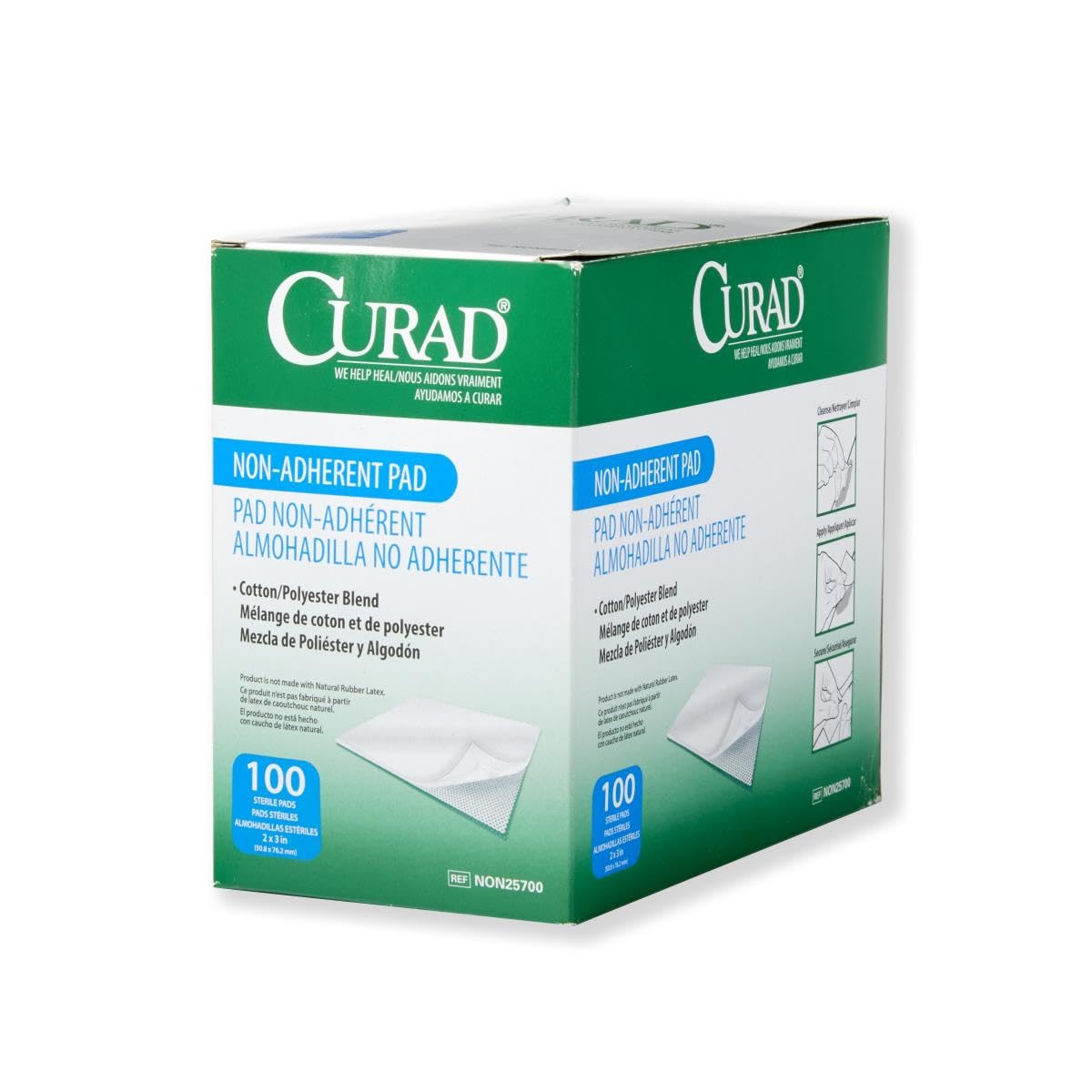 Curad Sterile Nonadherent Pad, Soft, Perforated, Absorbent, Cotton/Polyester, 2" x 3", Sterile, 100 Pads