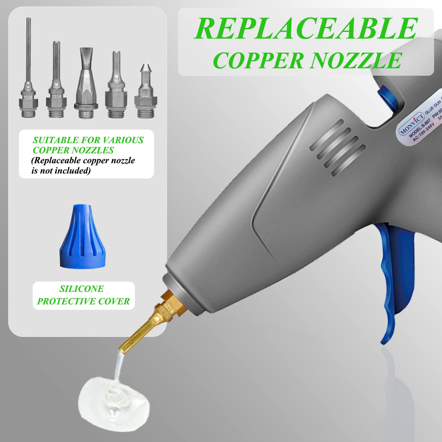 ✅【Full Size & Safe】- Full size hot glue gun featured with anti-scalding protection copper nozzle, ceramic PTC heating system is UL certified. Made with premium plastic engineered to protect from the sustained high pressure and temperature. An ergonomic design and stream handle make it comfortable to grip and easy to hold. Please insert two short glue sticks to use this full size hot glue gun.