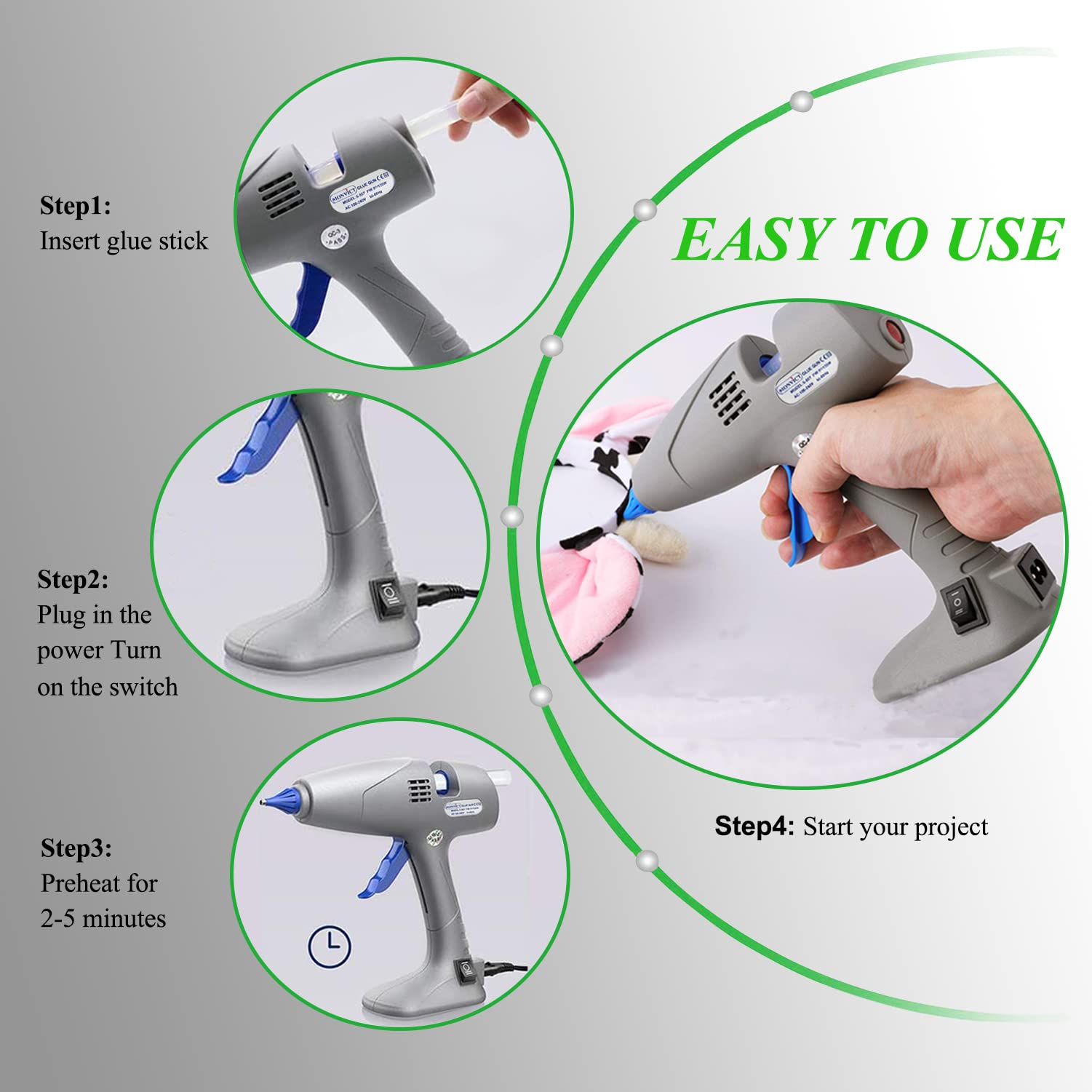 ✅【Base Stand-Up Hot Glue Gun】- Comparing with other glue guns, our design patented hot glue gun built-in unique stand-up base to keep your hot glue gun from tipping over. It's an ideal choice for all hot melt glue gun users, making your working easier and never get burned.