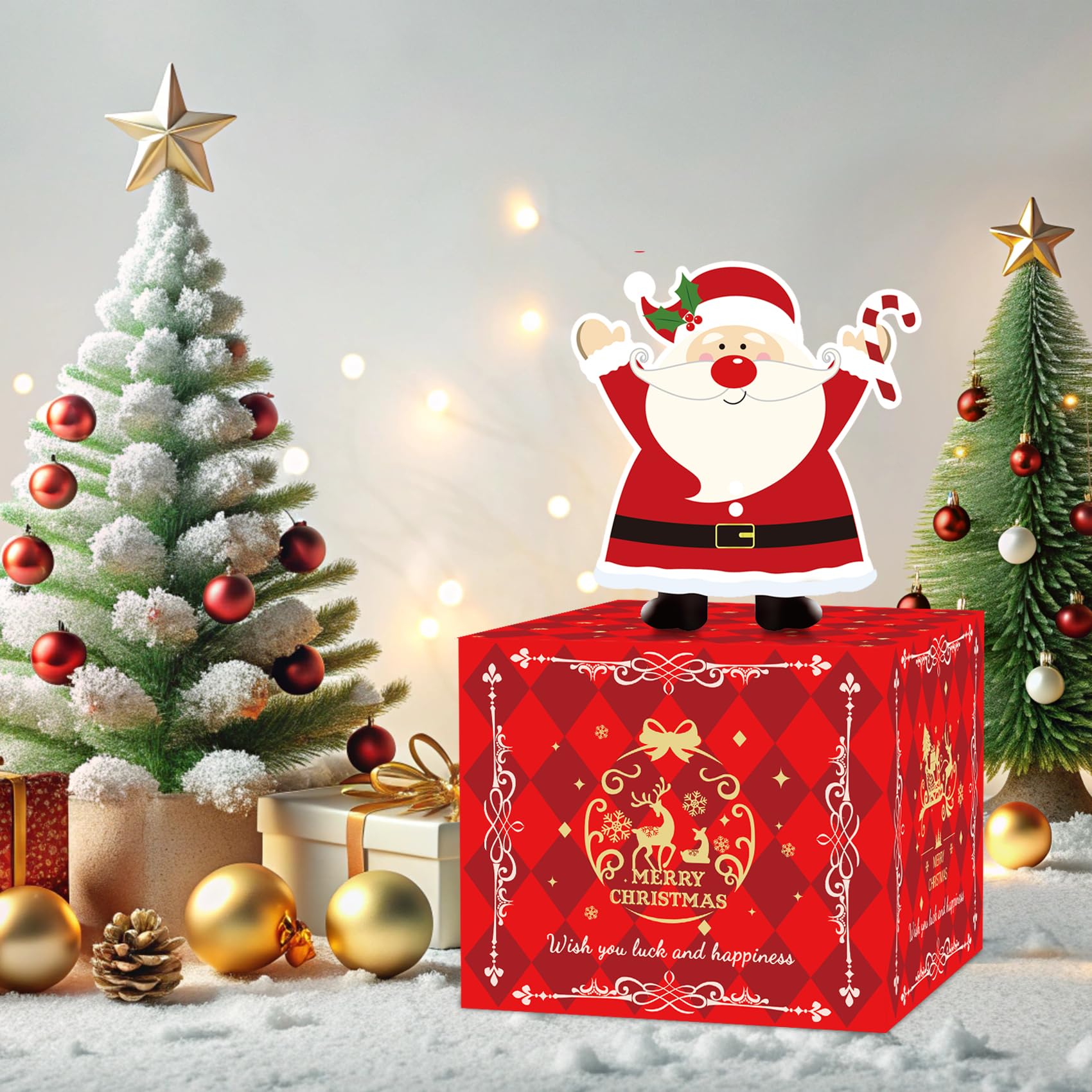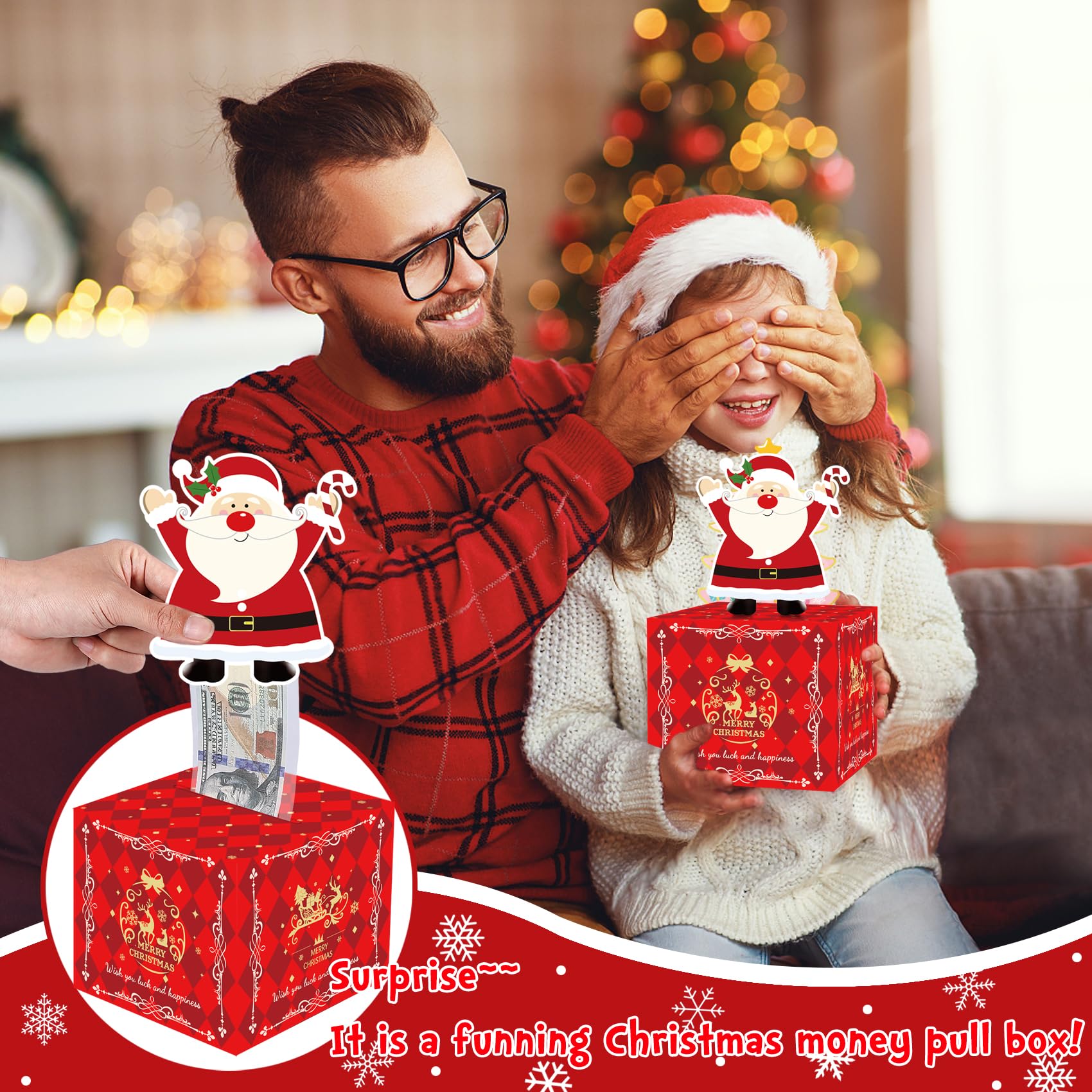 đ ăPerfect Christmas Money Pull Box DesignăThe Christmas Money Box measures 4.3 "x 5.3" x 5.3 "and is made of sturdy cardboard with a Marry Christmas theme pattern. The inside of the cute "Santa Claus" card has tape to secure the money roll. The plastic bag size is 3.15" x 7.89 "(2.61" x 6.14 "in US dollars), and 100 plastic bags are enough to accommodate the amount of US dollars you want to customize. This is not only a surprise gift, but also an elegant way to give cash.