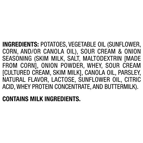 Product Description LAY’S Sour Cream & Onion Flavored Potato Chips give you the tang of all natural sour cream and mild onions. From the everyday to the instant get-together, enjoy the moment with these deliciously fresh-tasting and perfectly crispy potato chips that have been a family-favorite snack for nearly 75 years. These big bags are great for sharing some delicious fun at home. Manufacturer Contact Information Plano, Tx 75024-4099
