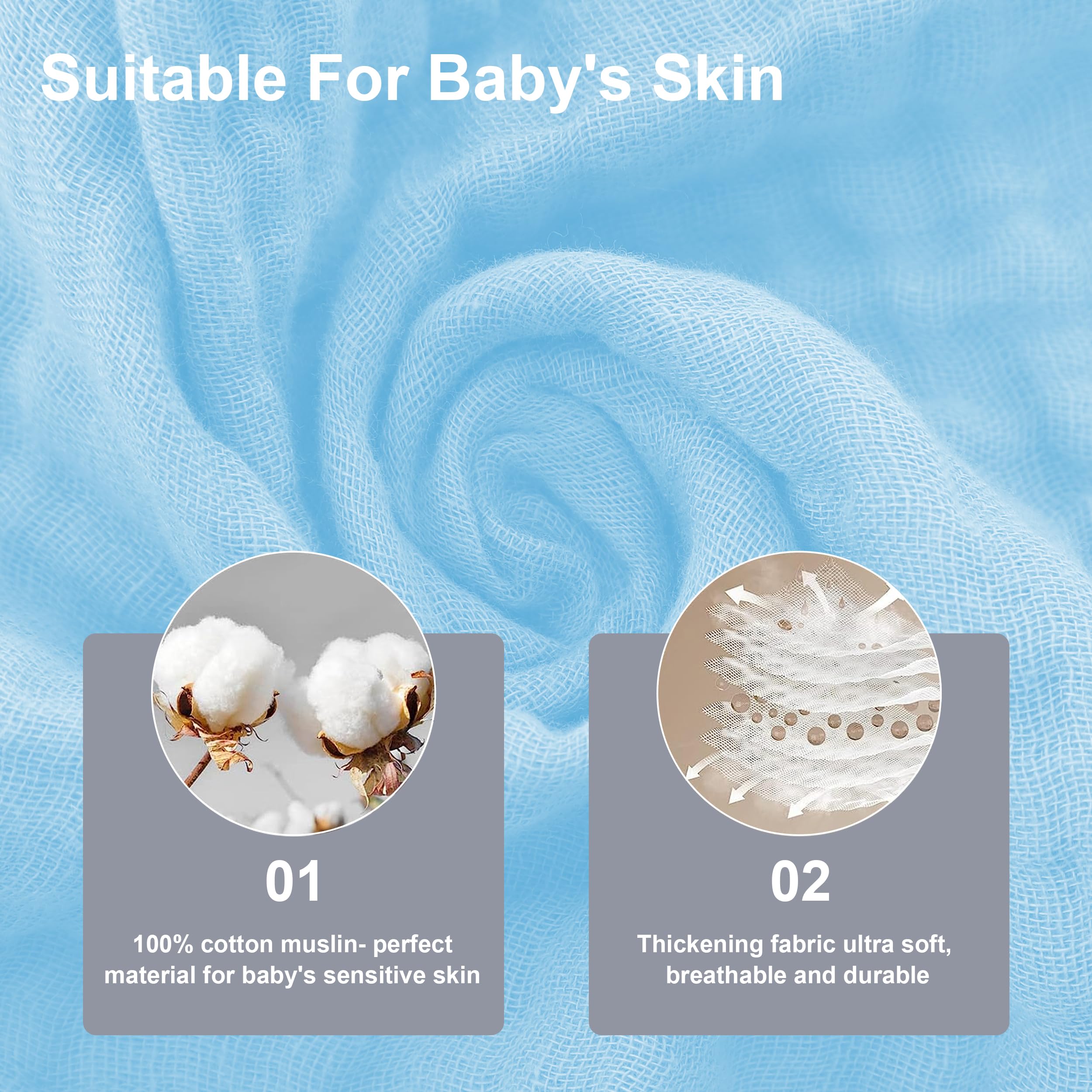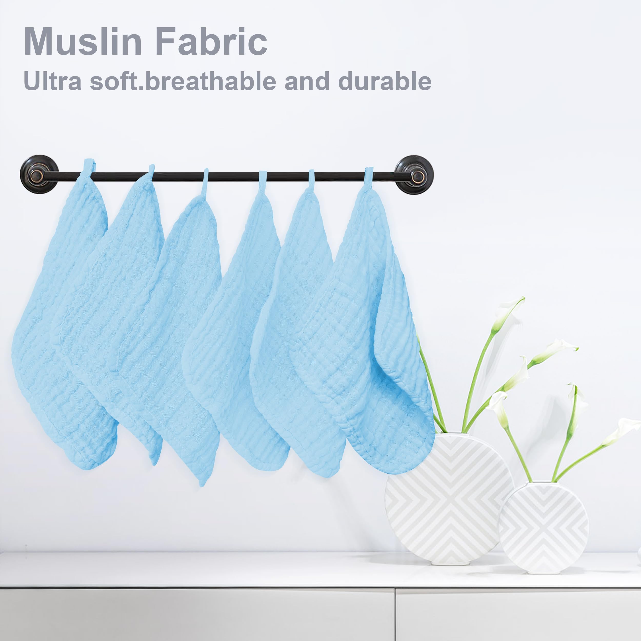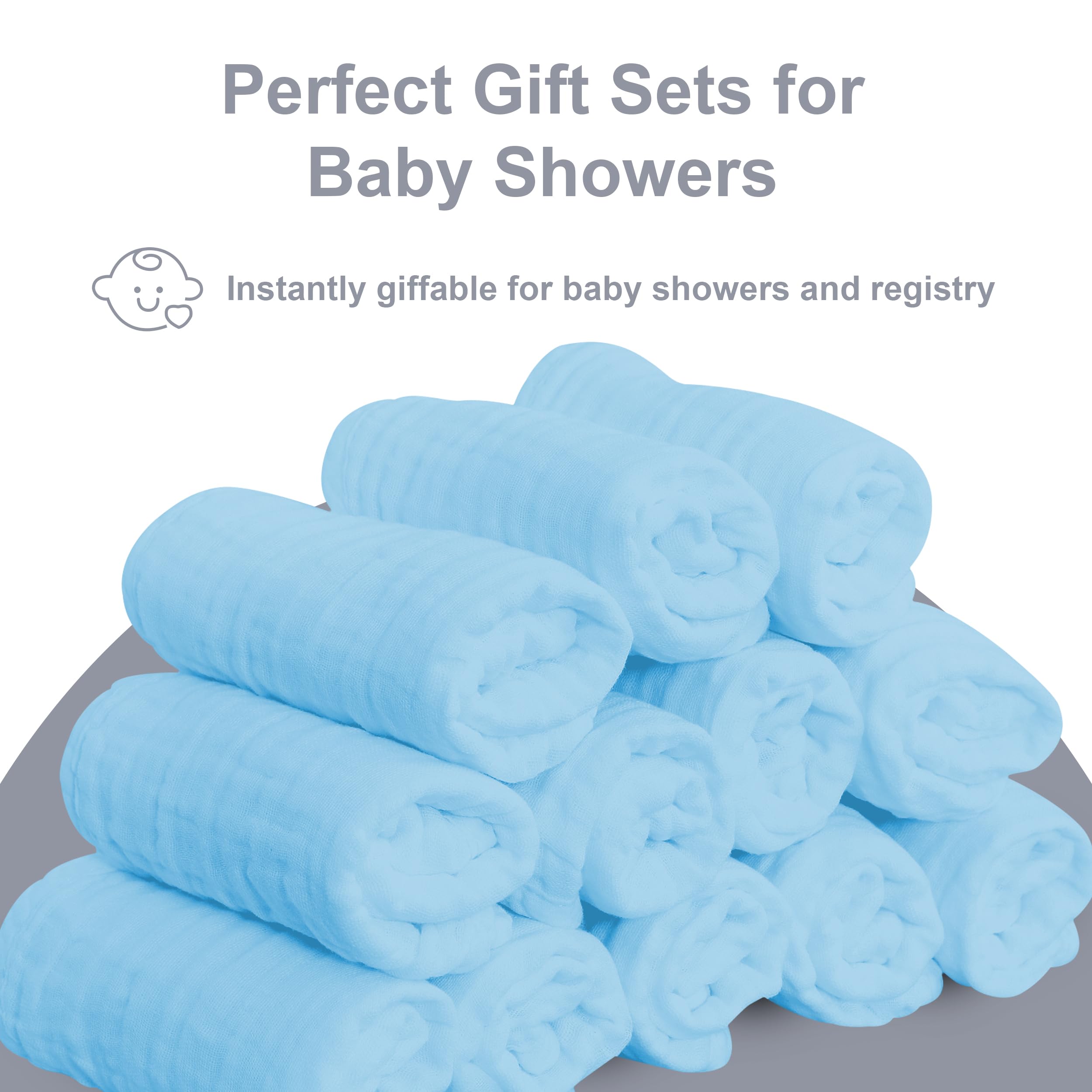 SWEET DOLPHIN 12 Pack Baby Muslin Washcloths - 10"x10", Aqua