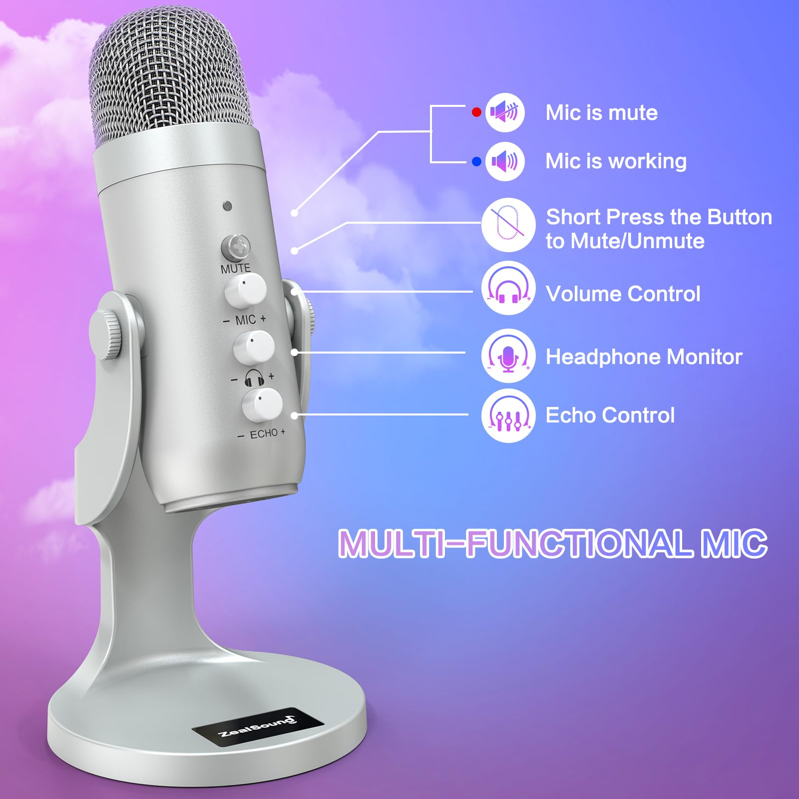 【Easy Plug&Play Setup】 This USB gaming microphone for computer is ready to use with Computer, Laptop, PC, Windows, Mac OS, PS4, and PS5 right out of the box. Connect it easily to your iPhone, Type C Phone, iPad, or Android Tablet using the included USB IPHONE ADAPTER and Type C to USB adapter.Additional setup steps are unnecessary with this plug-and-play solution. It's simple to start creating video content and engage with platforms like YouTube, Instagram, Zoom, TikTok, Twitch, and podcasting.