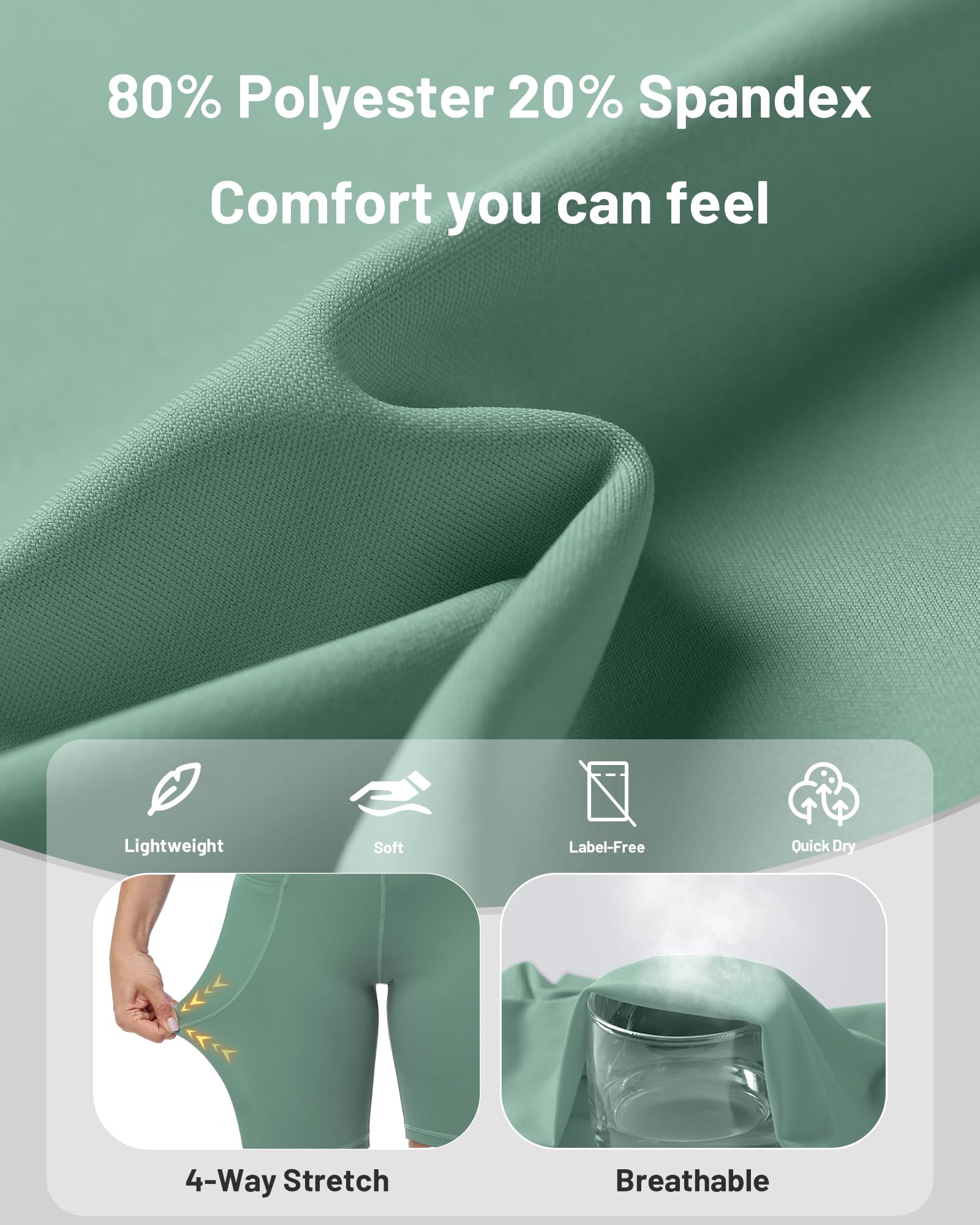 Breathable & Stretchy Fabric: Made with 80% polyester and 20% spandex, these womens biker shorts offer a silky-soft feel, stretch, moisture-wicking, and breathability for ultimate comfort during workouts