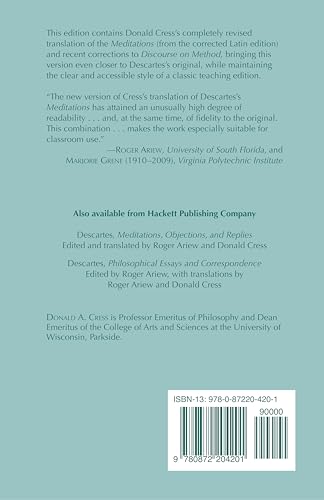 This edition contains Donald Cress's completely revised translation of the Meditations (from the corrected Latin edition) and recent corrections to Discourse on Method, bringing this version even closer to Descartes's original, while maintaining the clear and accessible style of a classic teaching edition.