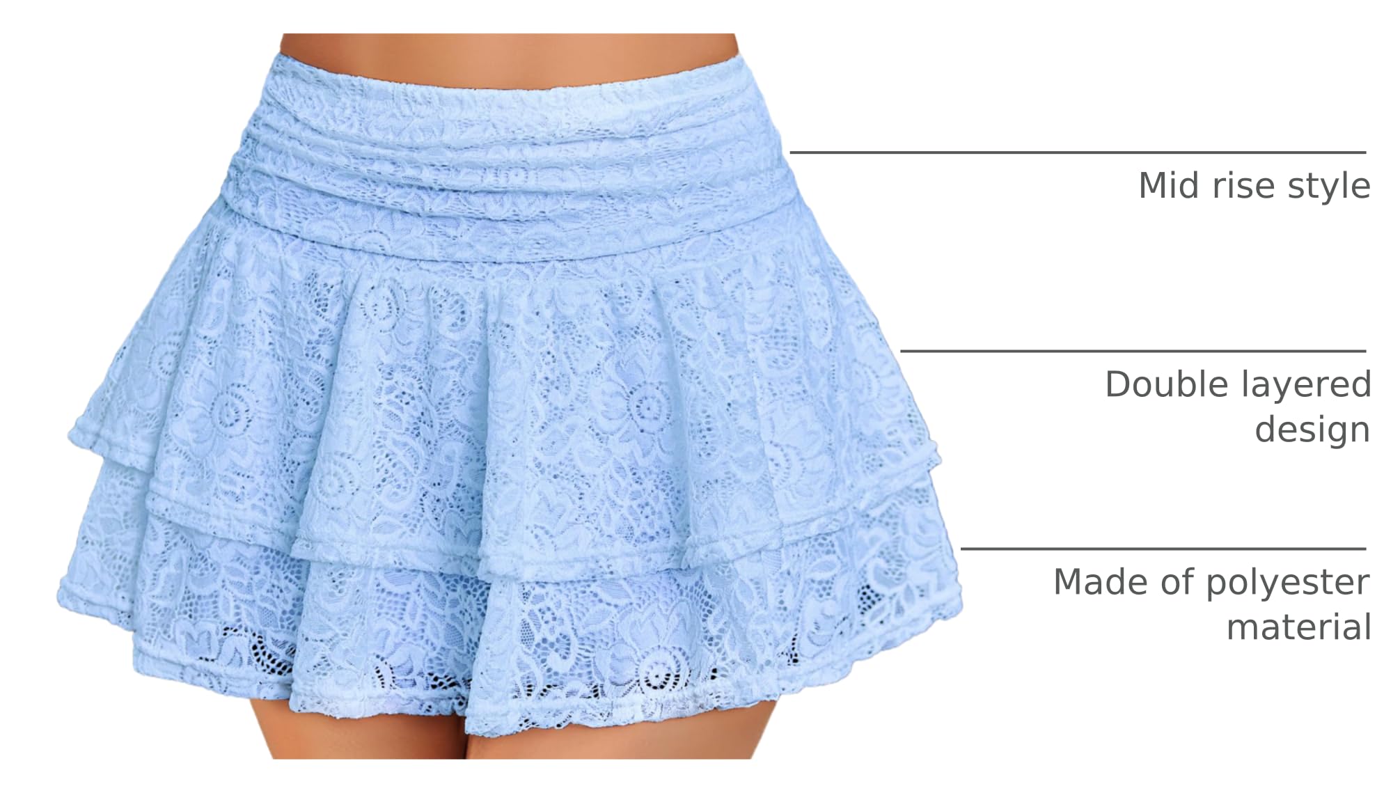 πDesign---Mini skirt featuring double layered, no see-through, A-line flared silhouette and lace ruffle design which can show your flattering curve very well. Chic design make them will never go out of style.