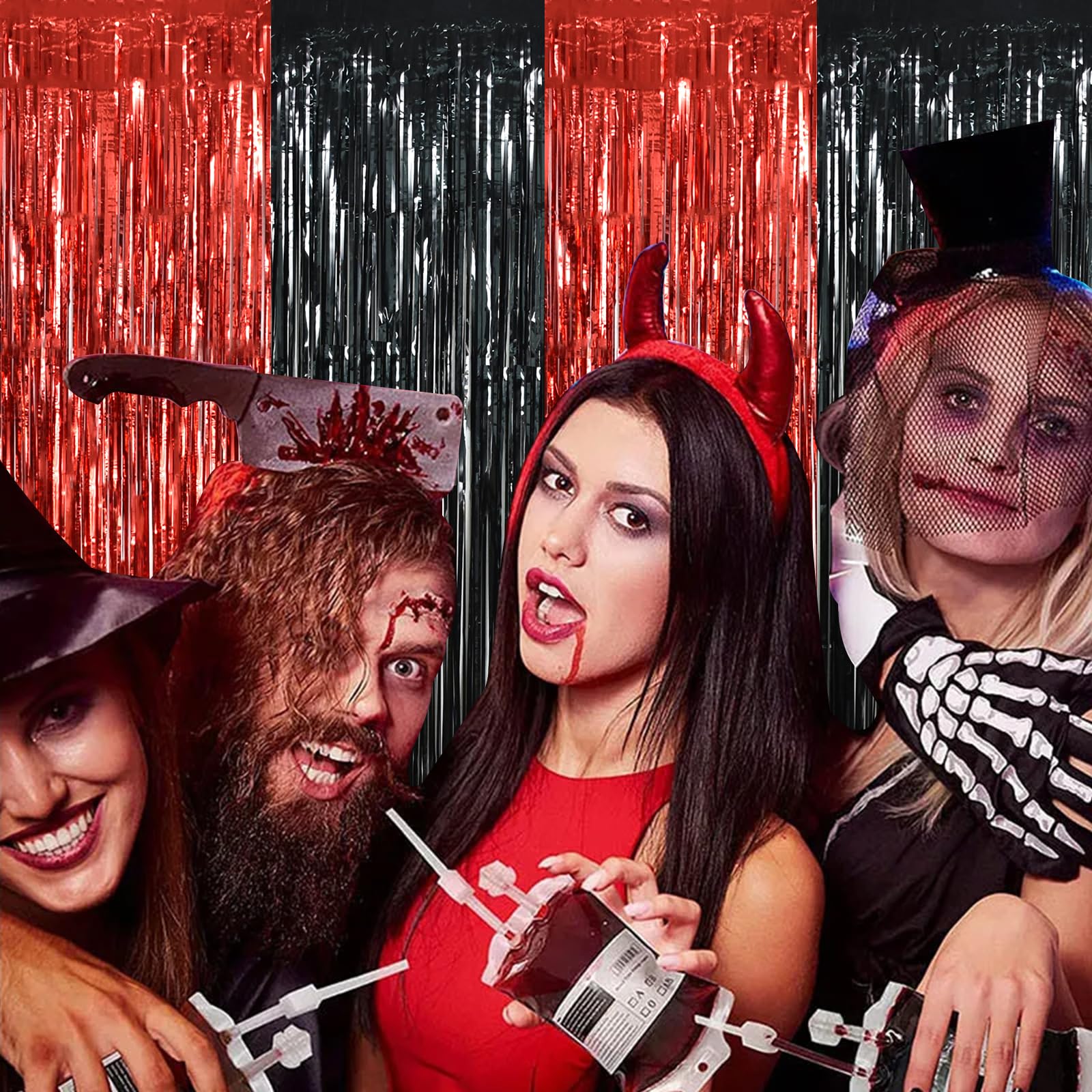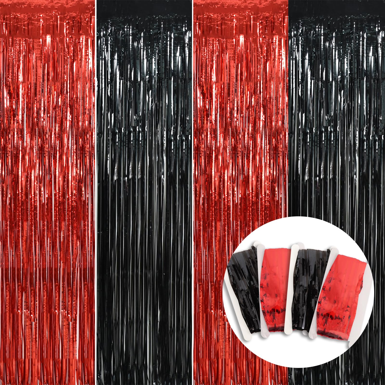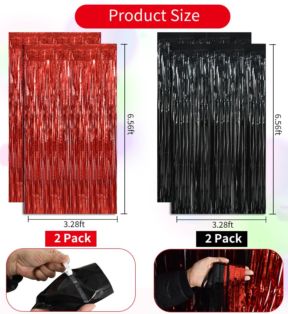 【shiny Party Streamer Backdrop】 Want to make your party to be a scream one? Get this foil backdrop curtain as the party backdrop now! You will find that the red and black streamers is great to make your party more exciting!