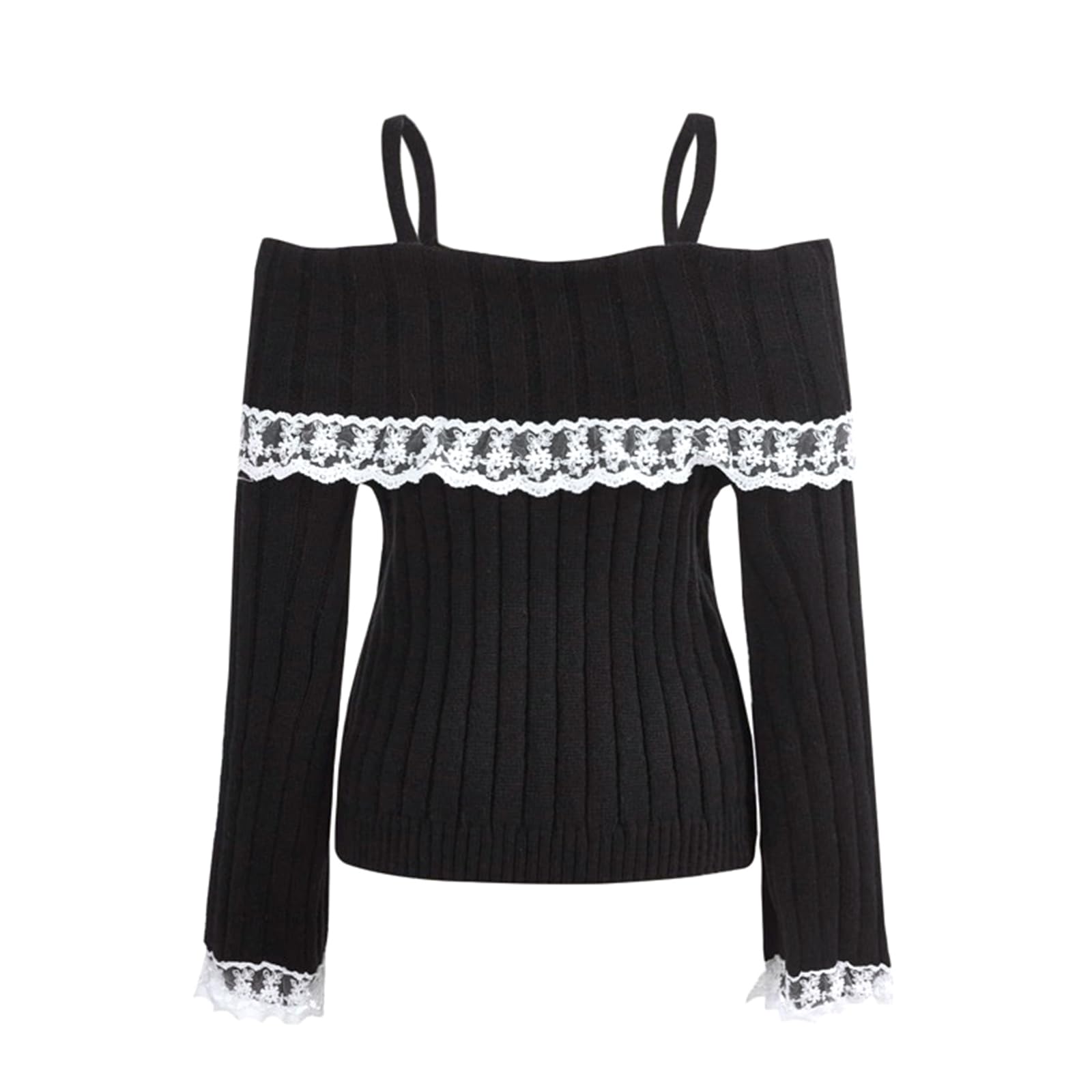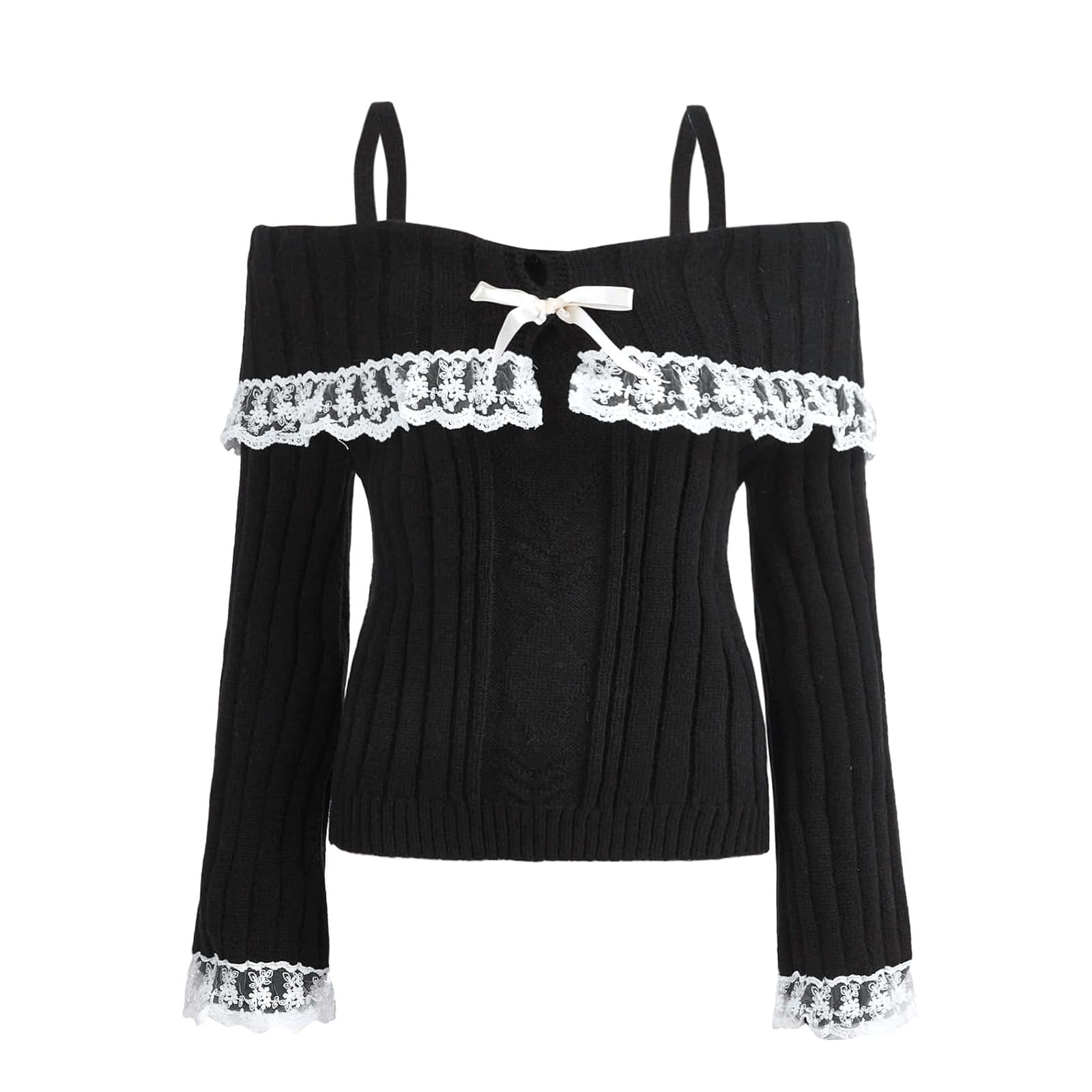 FEATURES: Women y2k tops fairy grunge shirts, long sleeve, solid color, lace trimmed square collar, ribbed knit, lace patchwork, slim fit blouse tops, tight shirts for women, ribbed y2k tops, y2k goth aesthetic clothing, trendy teens 90s egirl Harajuku gothic clothes fall streetwear.