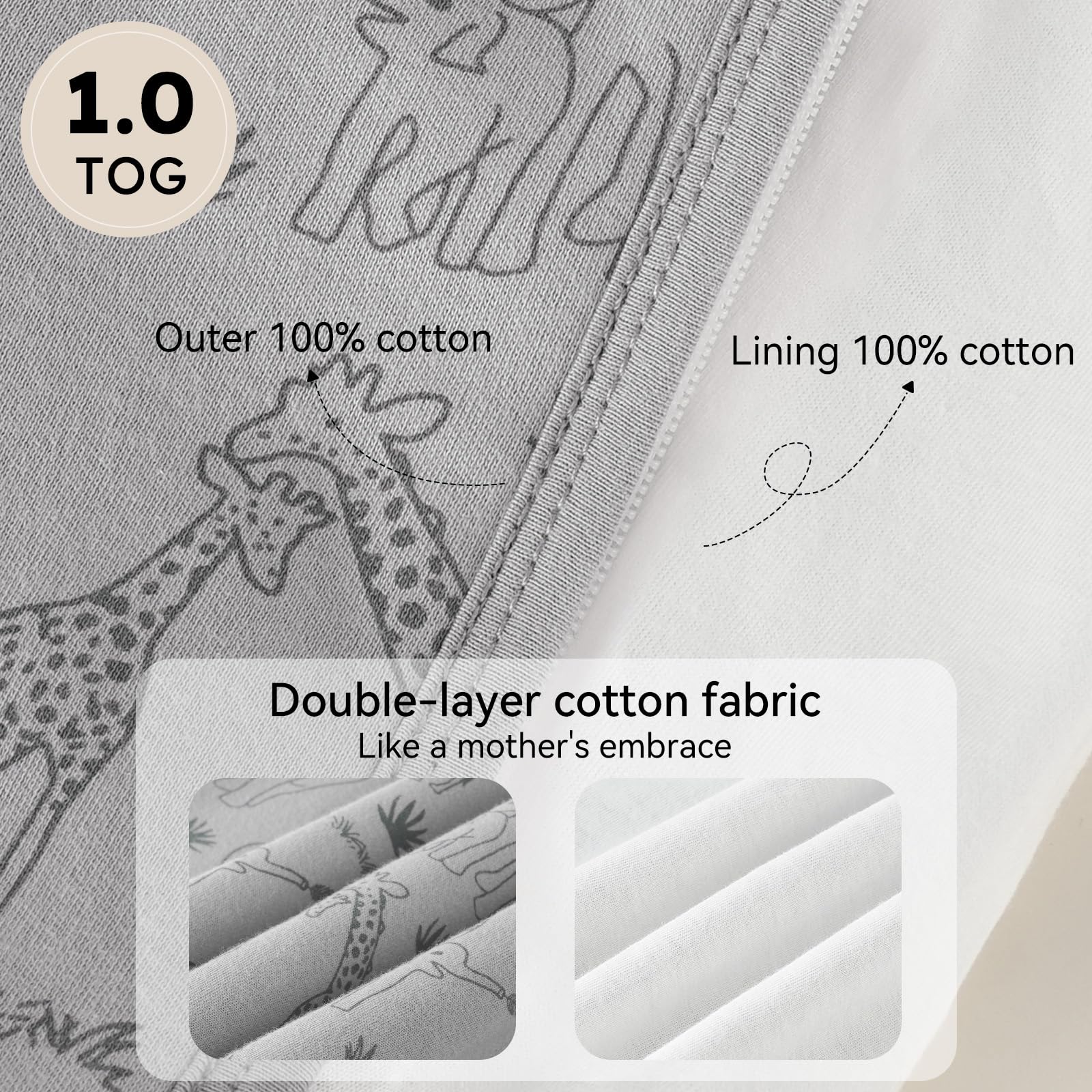 Convenient 2-Way Zipper - Unnivoll 1.0 tog sleep sack with premium smooth two-way zipper, parents can effortlessly change diapers during the night, ensuring uninterrupted sleep for your baby. What's more, the zipper protector at the top shields your baby's delicate chin from any zipper scratches. Your baby's comfort and safety are our top priorities!