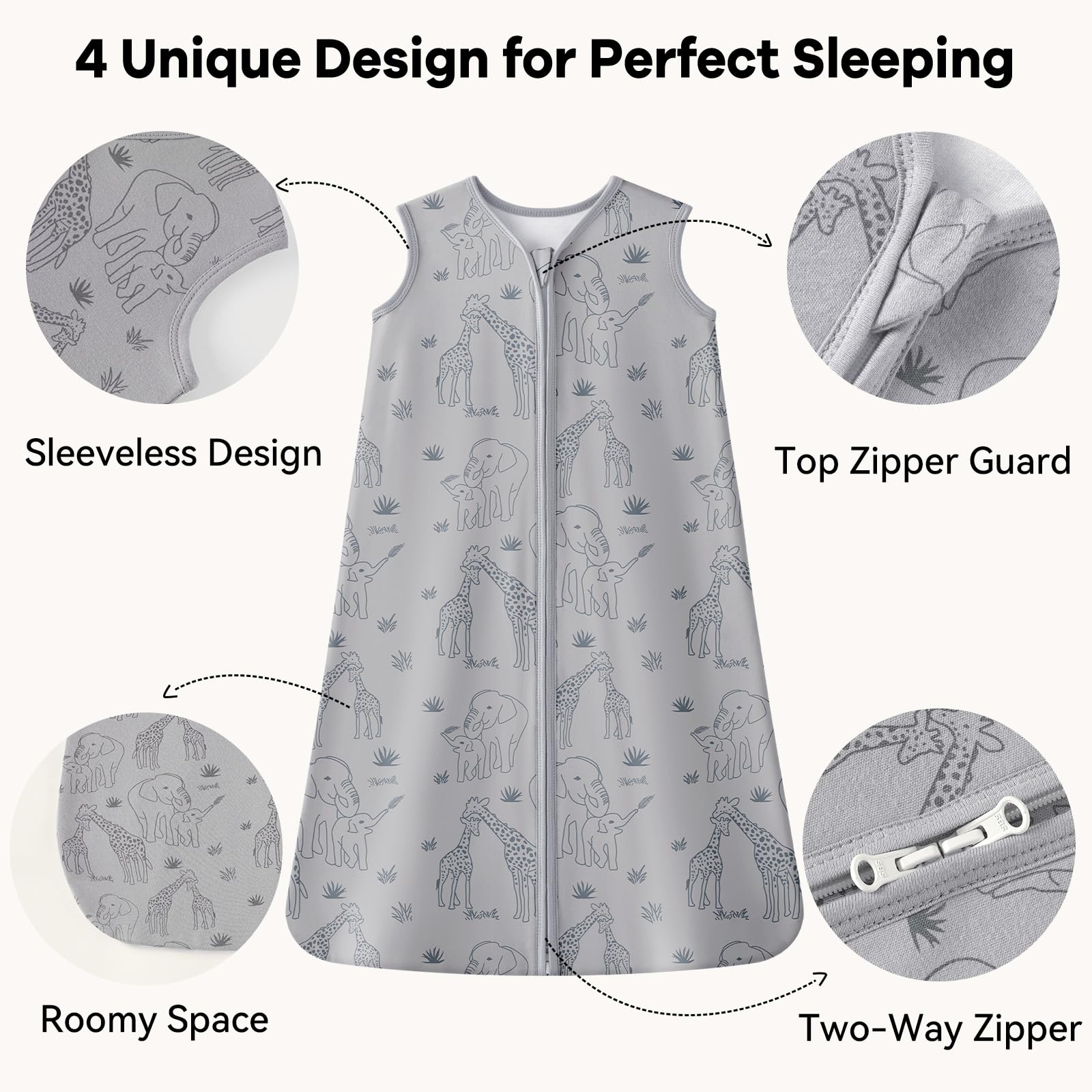 Roomy Spaces - The baby sleep sack offer ample room for kicking but can not be kicked off. This can promotes baby's healthy hip development, while the sleeveless design reduces the risk of overheating, ensures free arm movement, and provides lasting warmth for your little one.