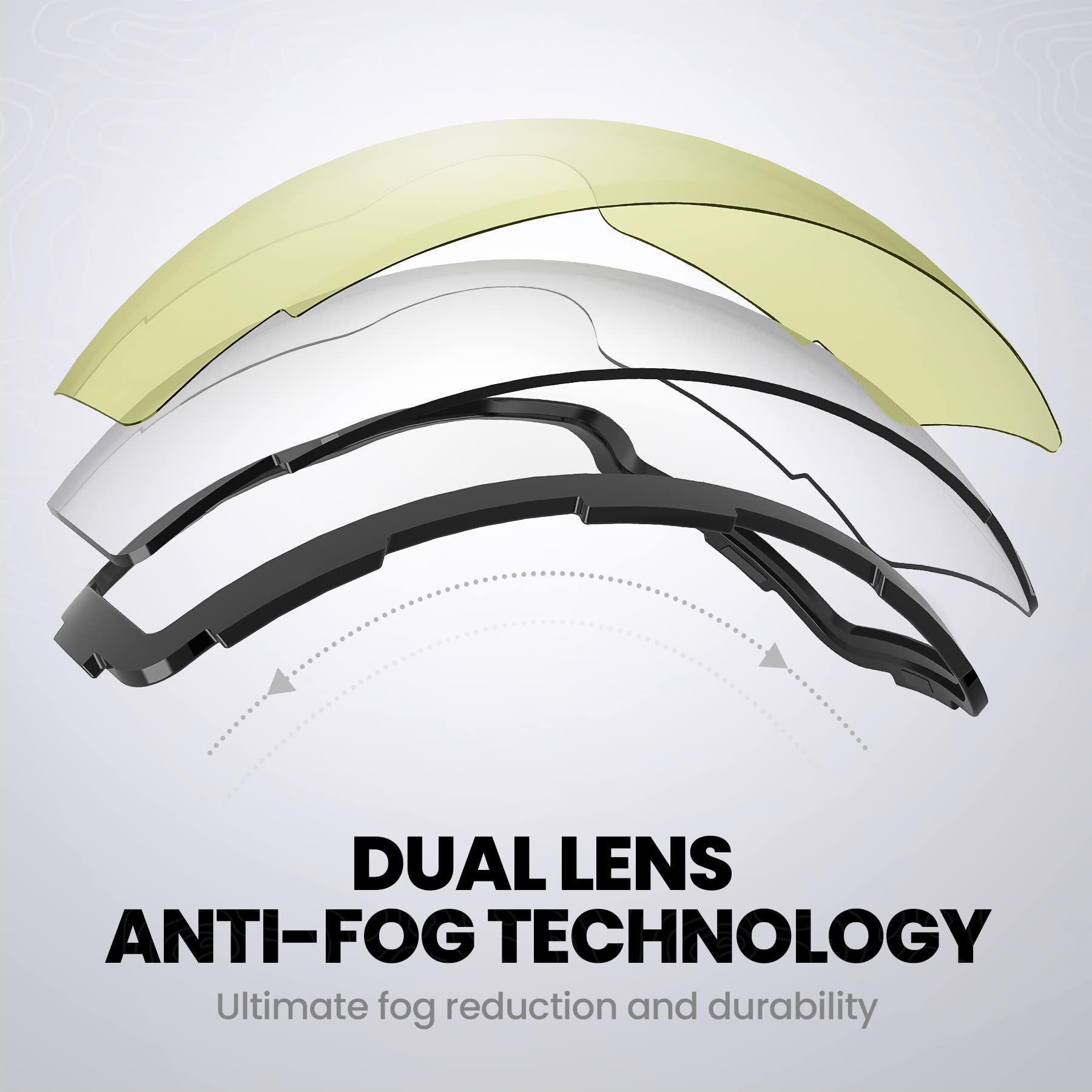 Anti-Fog Technology: Dual-lens insulation and anti-fog coating will give you clear vision