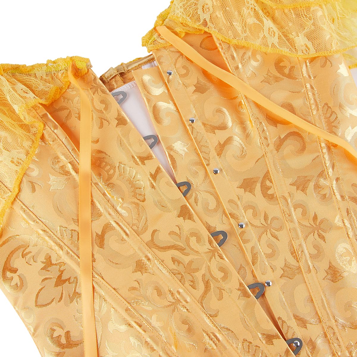 Elegant Jacquard Fabric – This gold corset top features luxurious satin jacquard material with intricate baroque patterns, perfect for renaissance, burlesque or steampunk style looks
