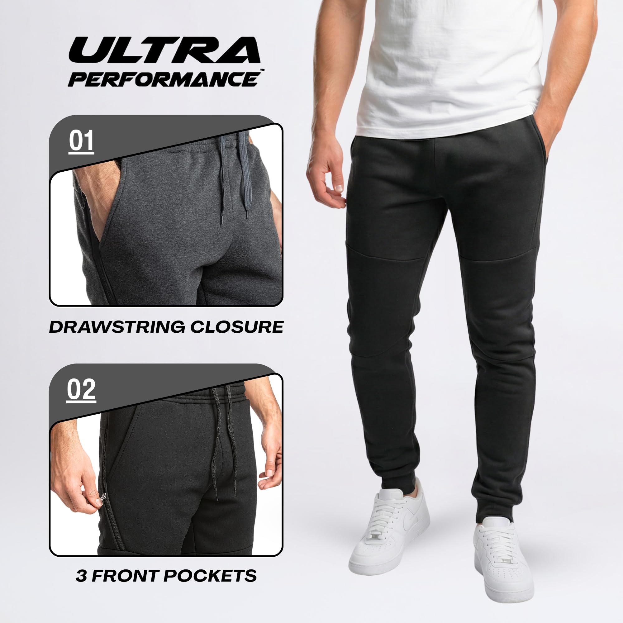 Jogger Pants For Men Styles With Zipper Pocket: Our activewear tech fleece joggers for men come in 3 styles: Black sweatpants 3 Pack, Color Block 3 Pack & Black, Heather Grey & Charcoal Grey sweatpants 3 Pack. All feature a high-tech, heat-sealed oversized zipper pocket.
