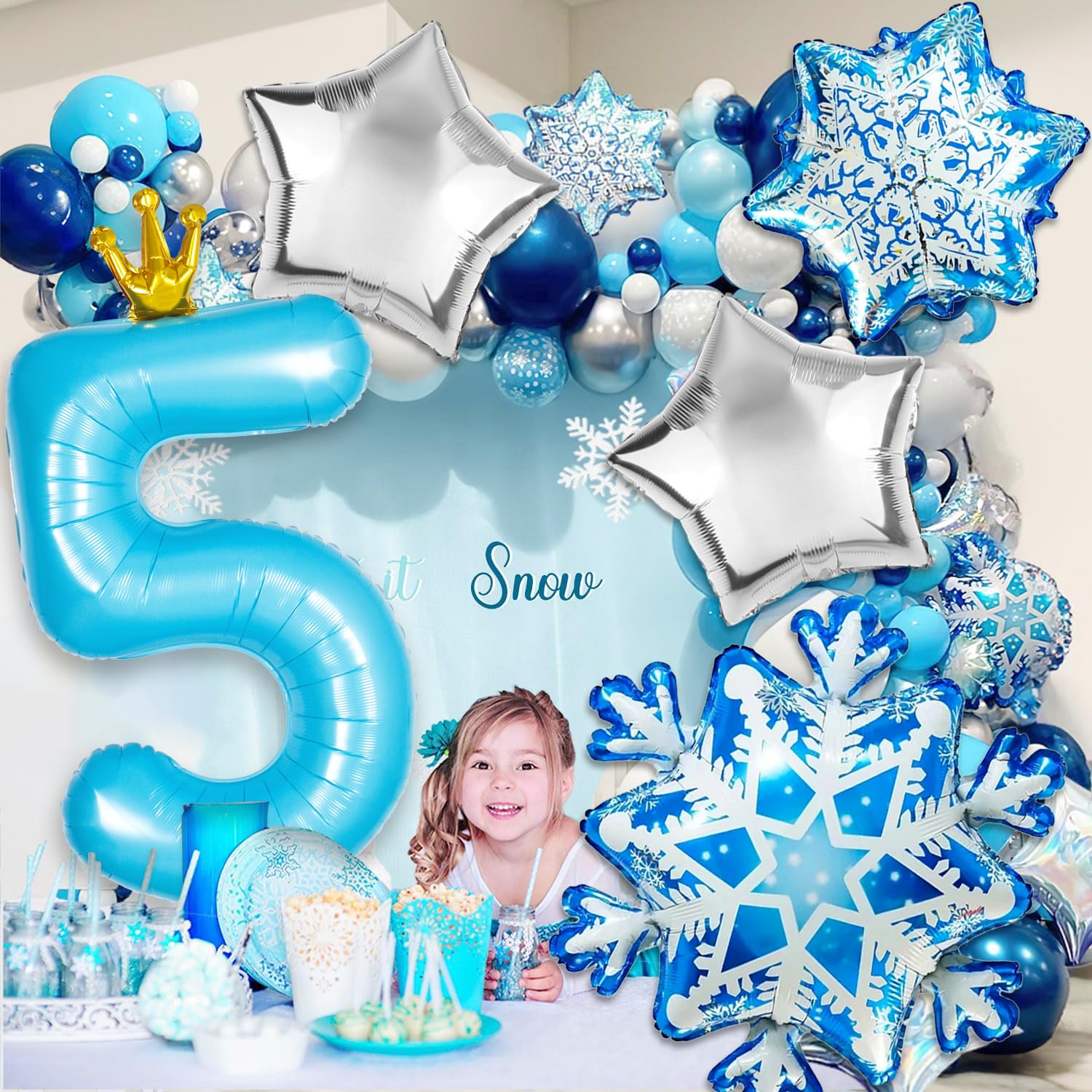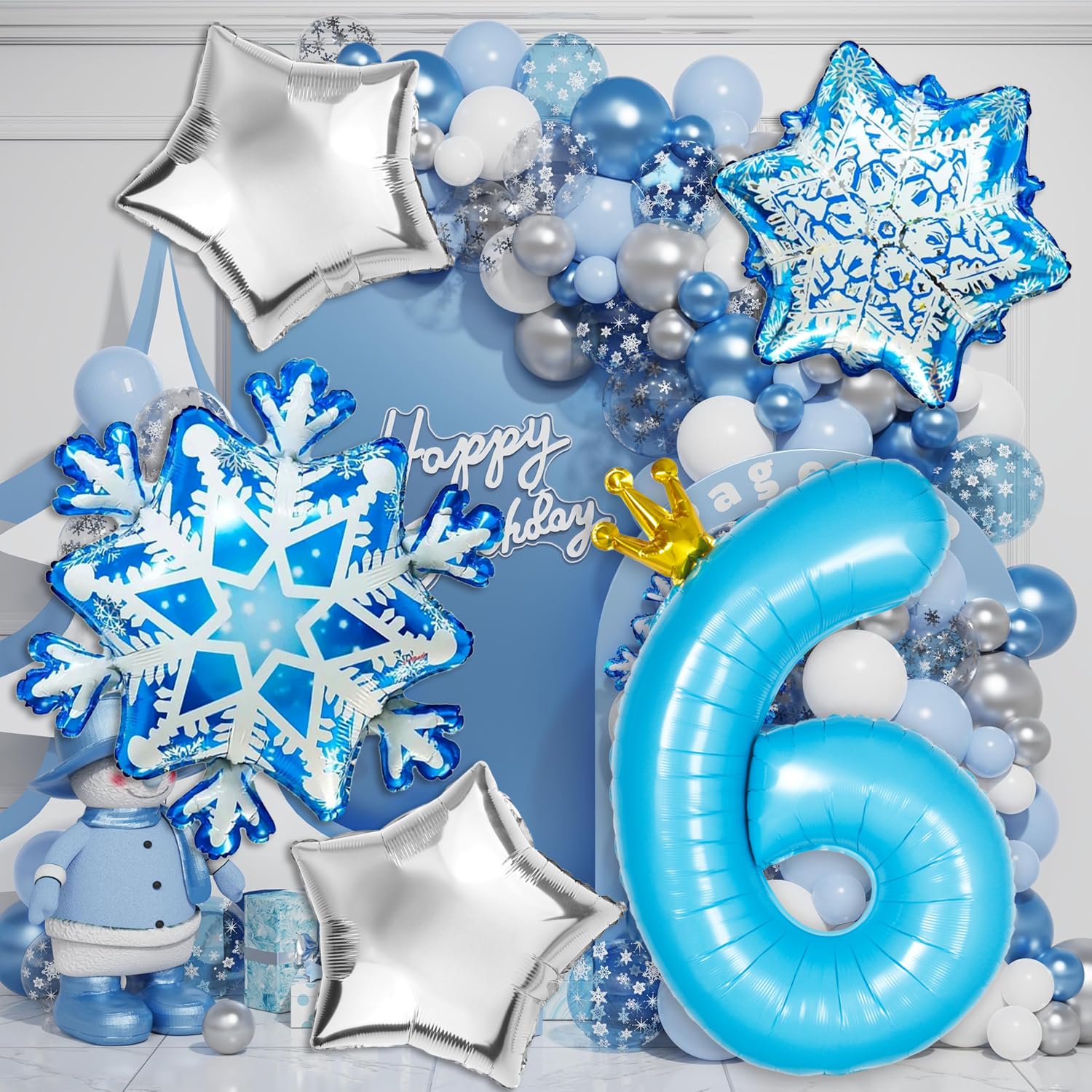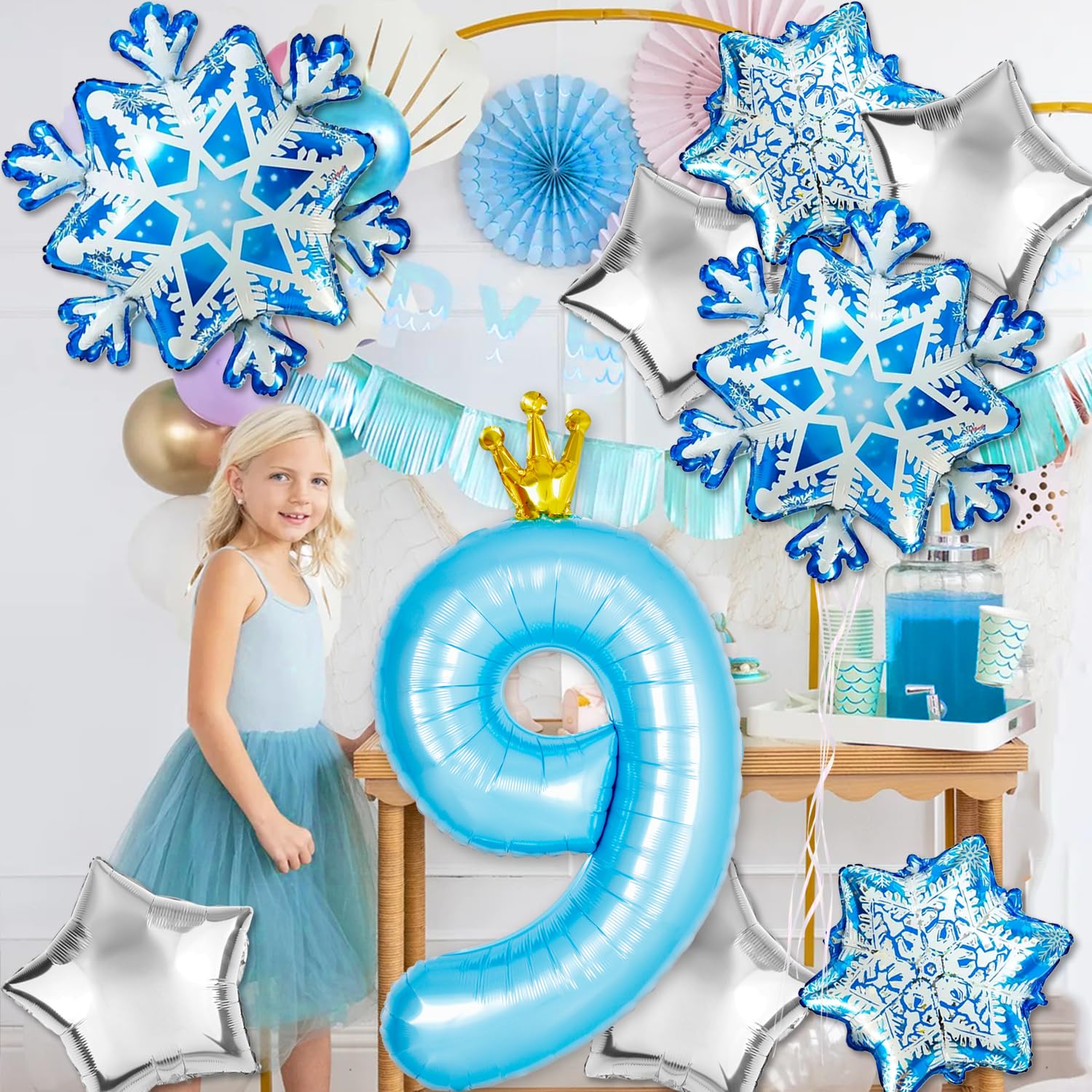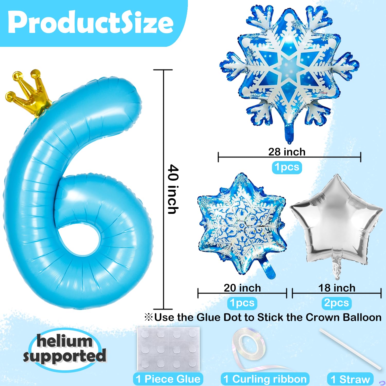【Easy to Decorate】The winter theme snowflake and number balloons has holes in the top that can be strung together and hung with the ribbon in the package. They also can be deflated with a straw to facilitate repeated balloon use. This frozen foil balloon is suitable for inflating with helium or air