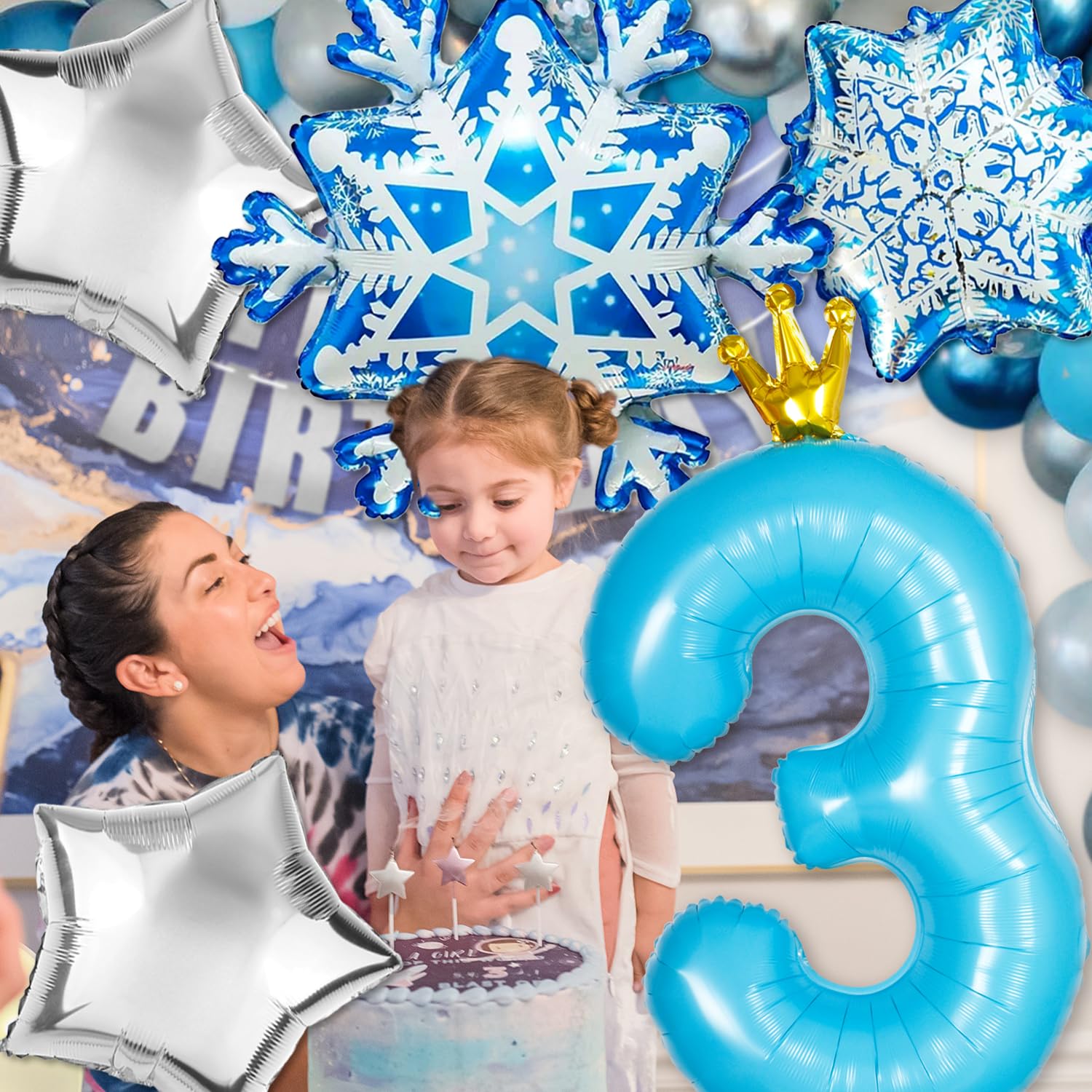 【Package Included】 2pcs Snowflake Balloons, 2 silver star balloons, and 40 inch frozen birthday balloon number 4 (deflated)+1 Straw+Glue Dots+1 curling ribbon. Plenty accessories to help your frozen princess theme birthday decor for girls Birthday Photo Booth Props, Stick the frozen 1 year old birthday balloons on your birthday balloon arch and frozen birthday backdrop by using the glue dot, or inflate the number balloons with helium and tie with the ribbon to float in the sky, light up your unforgettable 3rd frozen birthday party. The straw can deflate or inflate the frozen three balloon