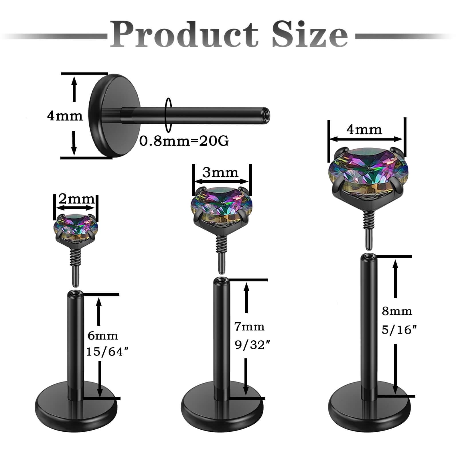 Earrings Stud Size : Studs bar length:6/7/8mm,5A cubic zirconia size:2/3/4mm. Each bar and top CZ can be switched at will, you can adjust different sizes to fit your ear piercings or nose piercings in different positions.