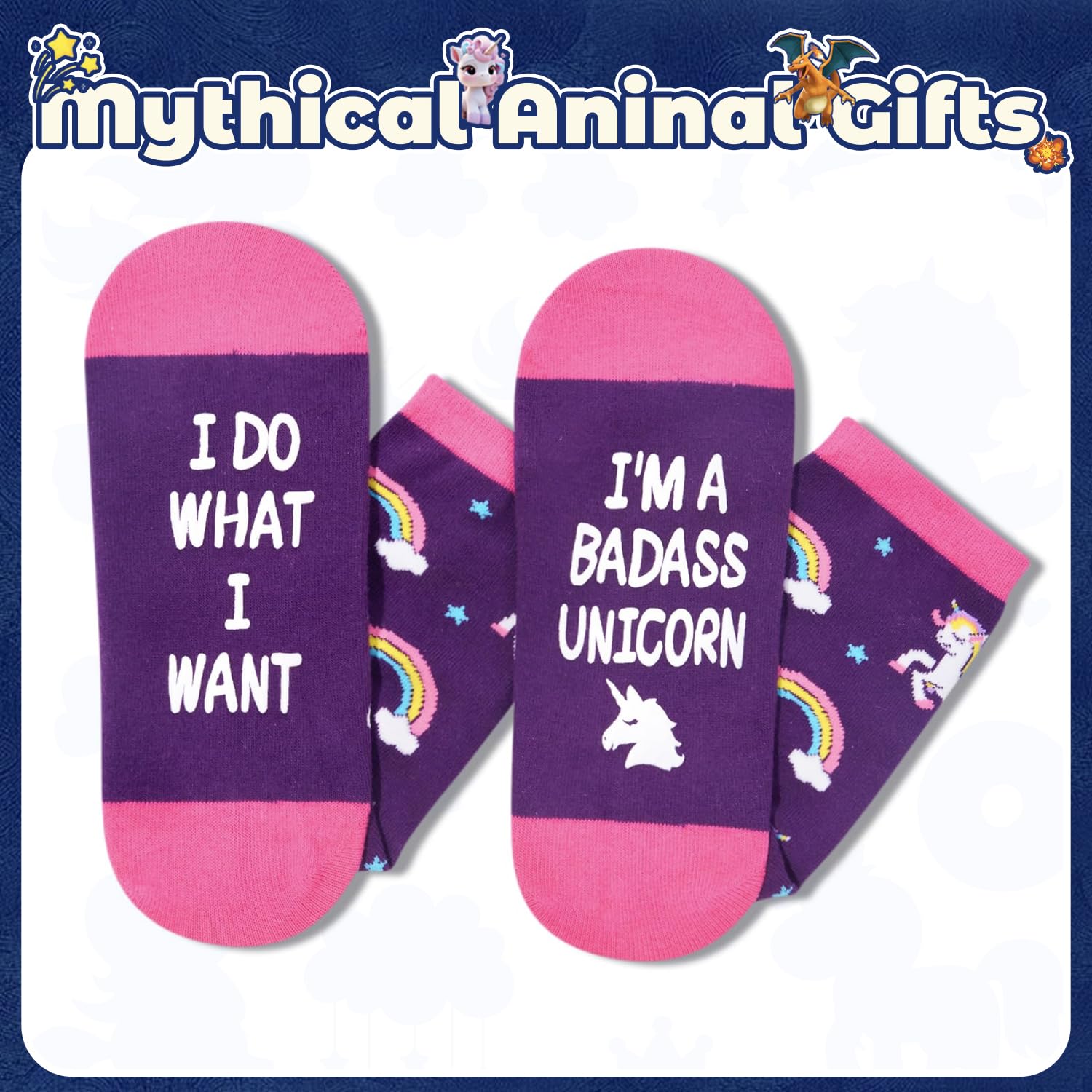 UNICORN GIFTS: Women’ purple unicorn rainbow socks with non-slip secret message: "I DO WHAT I WANT I’M A BADASS UNICORN" stylish and fun.