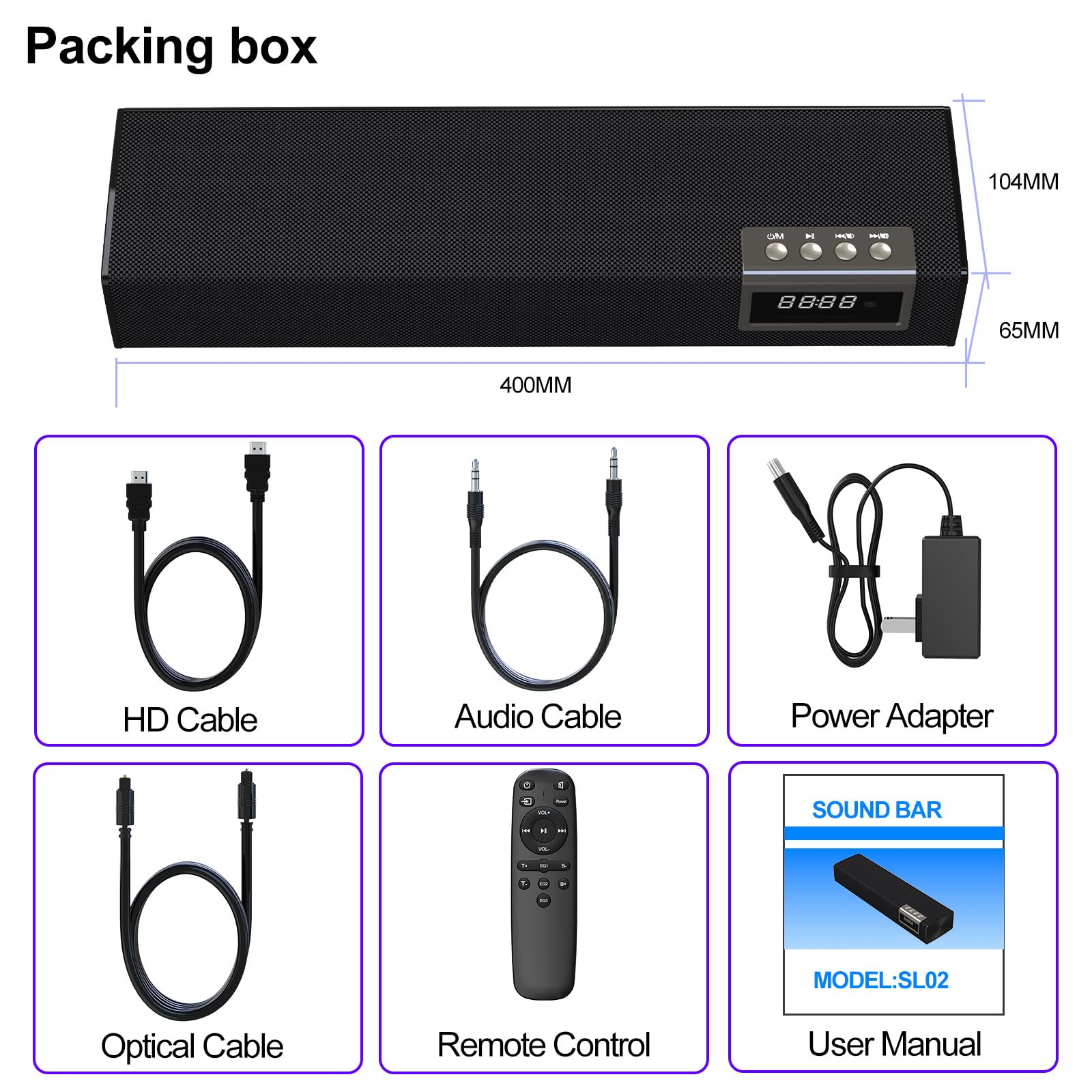 EASY OPERATION – Control this speaker bar for tv effortlessly using the included remote or the buttons on the unit. The redesigned remote offers a comfortable grip and intuitive use, while the built-in LED display shows input mode (BT / OPT / AUX) and volume level (such as V-16) at a glance. The display automatically turns off after 7 seconds of inactivity.