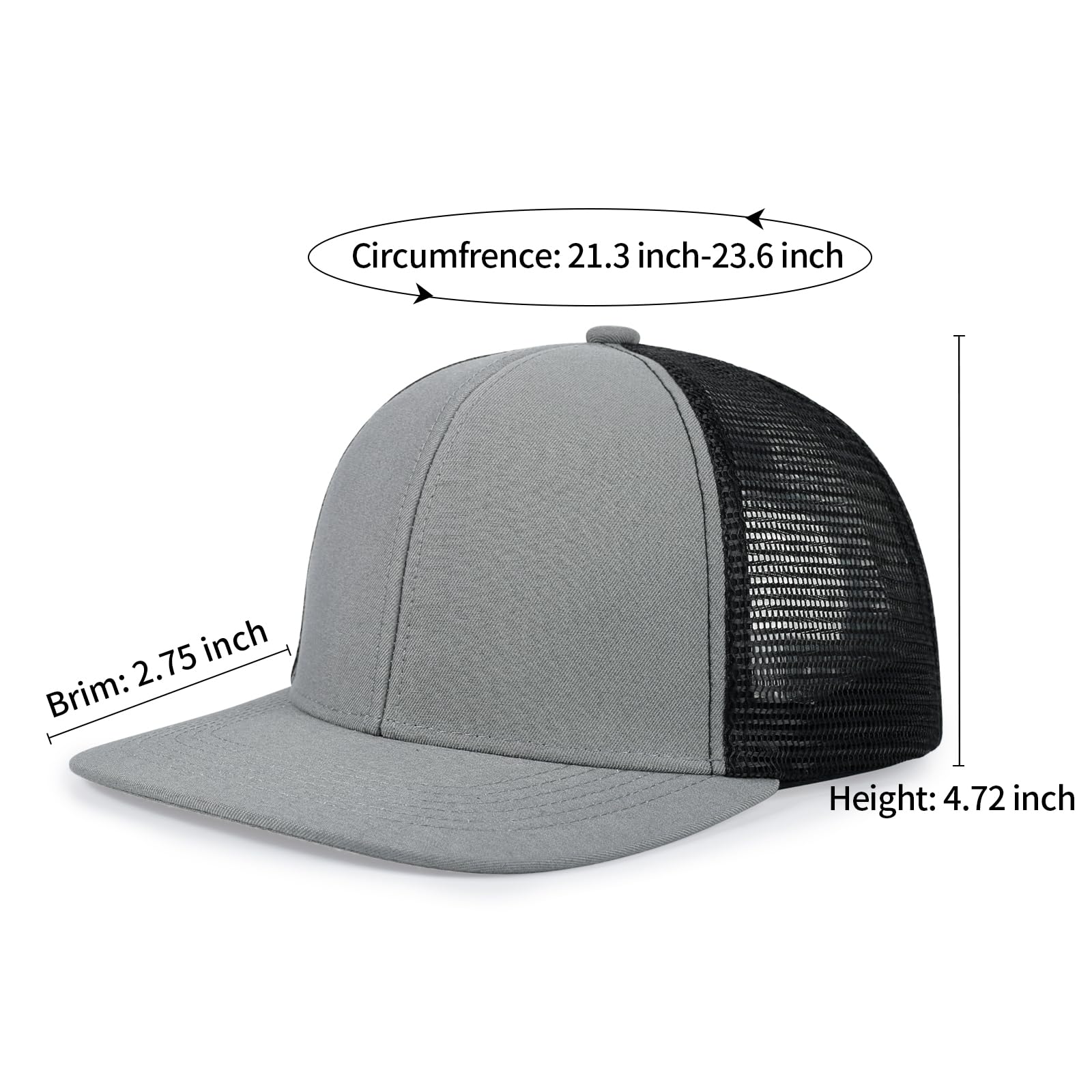 Adjustable Closure: These trucker hats fits for most of people, the head size is range from 22.05''- 24.41"(56 cm - 62 cm). One size fits most, comfortable everyday fit. Use the convenient button closure to fit the snapback hat to your head and ensure maximum ,comfort and a secure fit at all times. The unisex design makes it suitably perfect for both men and women.
