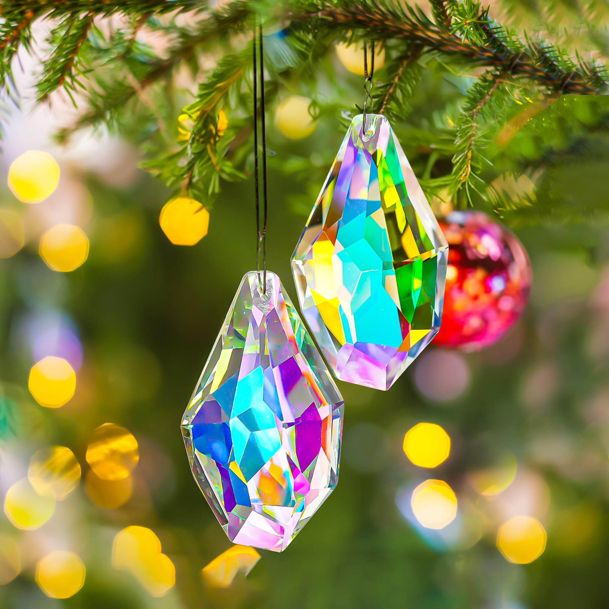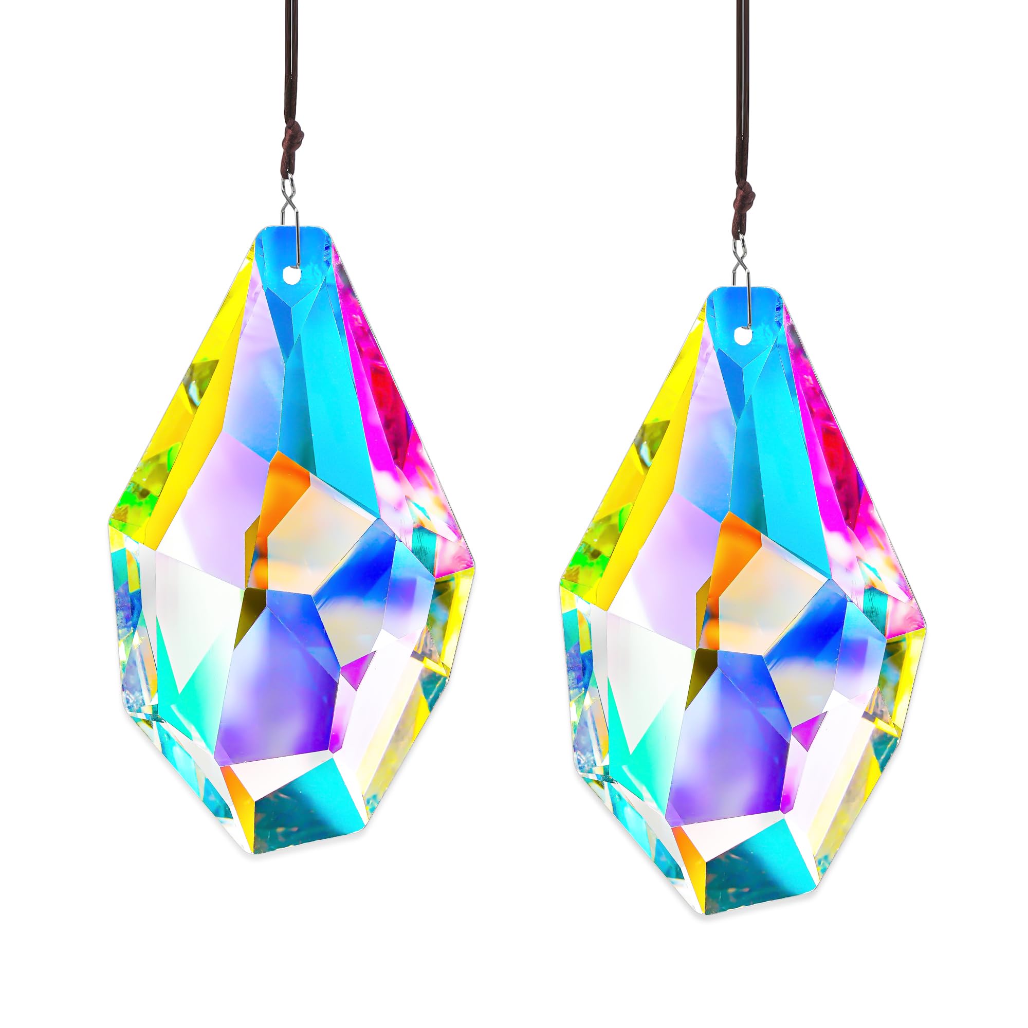 Sun Catcher Specification: 2 pack, made of k9 crystal, not acrylic not plastic. Crystal prisms rainbow suncatcher for hanging decor. With these crystal prisms will bring you a warm rainbow room