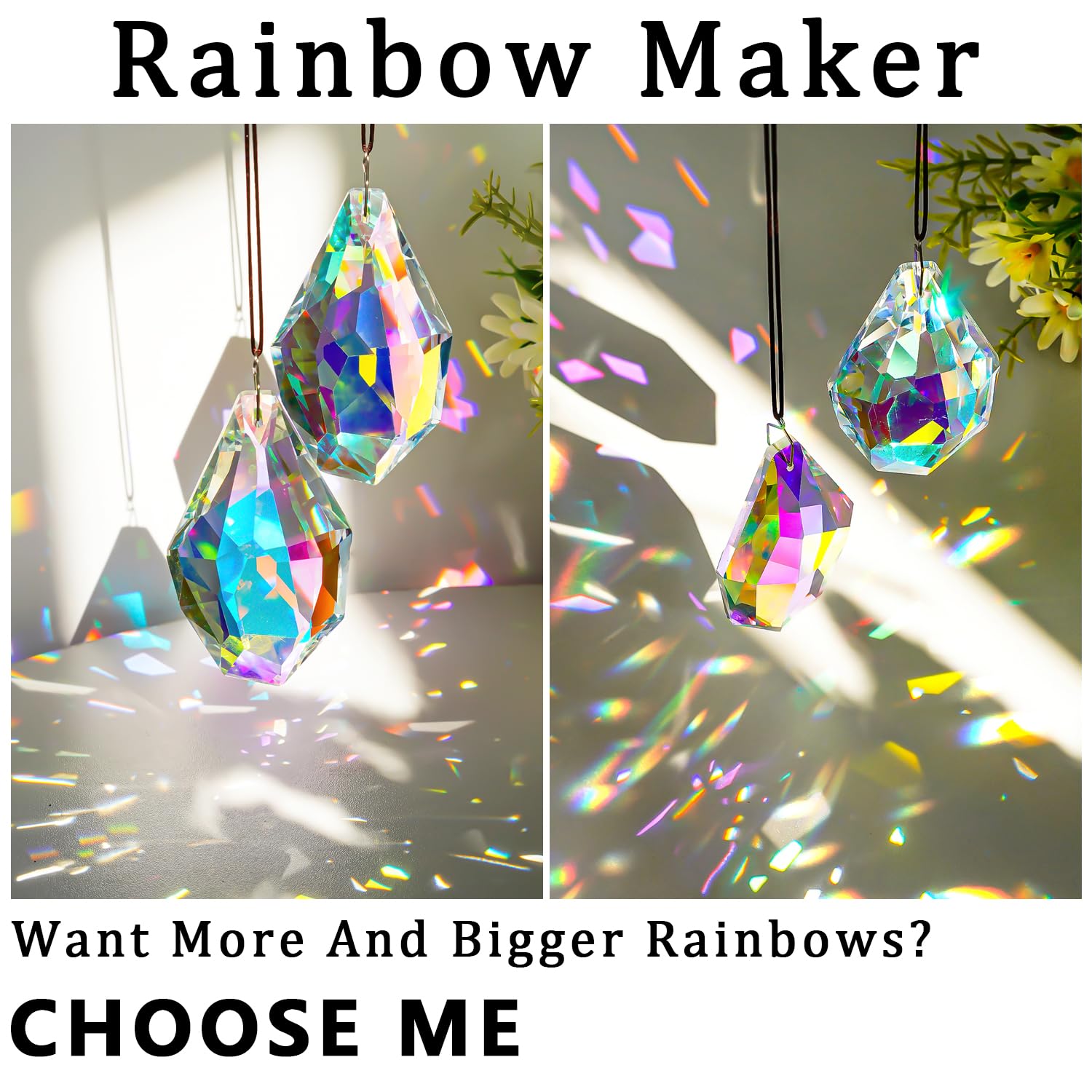 Crystal Rainbow Suncatcher: Crystal prism is finely crafted, suitable for indoor use.Could turn the sun's rays into many rainbows.Faceted crystals prism makes the most beautiful color, throws rainbows all around the room when hang in a window, brilliant in the Sun