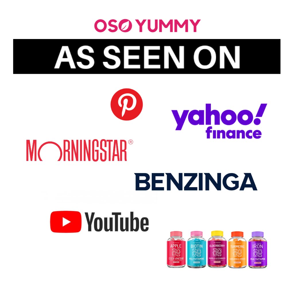 15+ Multivitamins | Vegan biotin gummies loaded with Vitamins A, C, D, E, B6, B12, Folic Acid, Biotin 5000 mcg, Pantothenic Acid, Iodine & Zinc. Oso Yummy beauty biotin chews are a delicious way to nourish and boost your body from within!