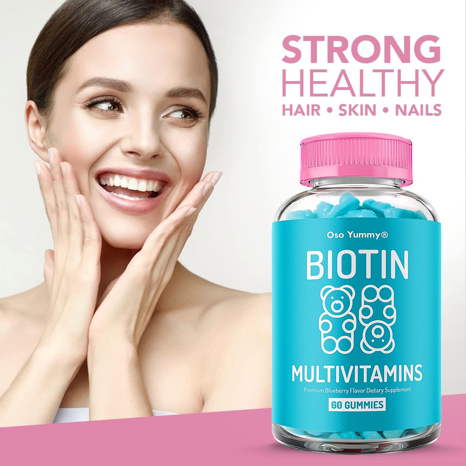 The Biotin Benefits | Oso Yummy biotin gummies helps prevent thinning & balding hair, receding hairlines, breakage, hair loss, acne, premature wrinkles, and brittle nails. Biotin is one of the B vitamins that works as a coenzyme to help break down food into energy