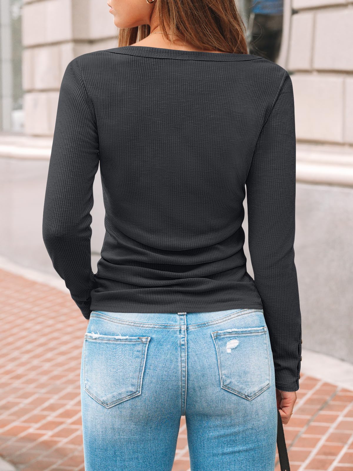 Design: Henley long sleeve shirts, button details on sleeves, ribbed knit structure and plain-colored design, the neckline button can be adjusted at will to create a sexy v-neck or scoop neck. Are all further eye-catching details