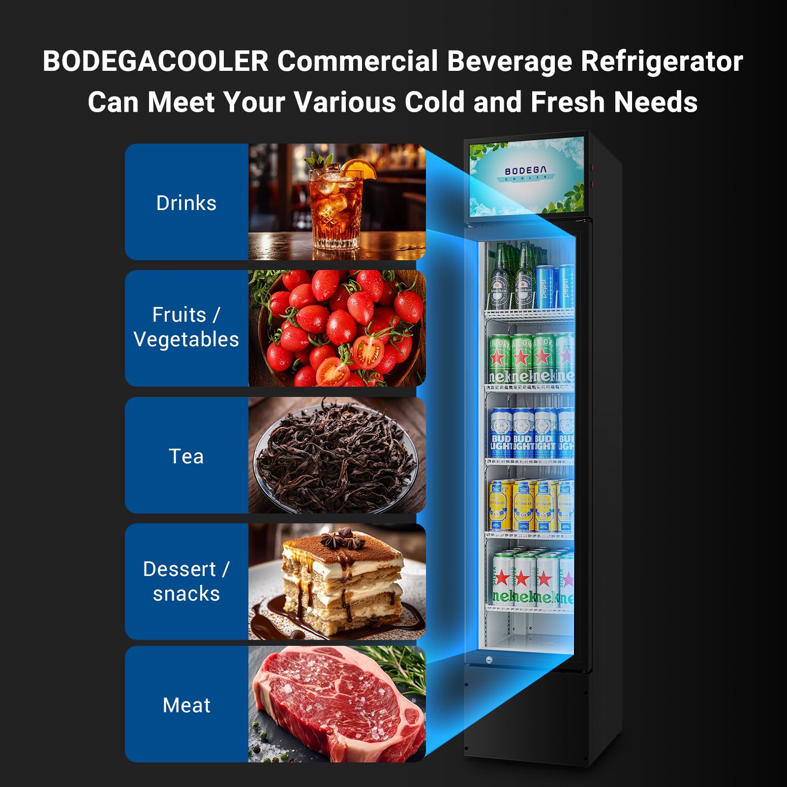 Temperature Control for Product Freshness : BODEGACOOLER commercial refrigerators is equipped with advanced temperature control technology, guaranteeing optimal conditions for storing perishables in a commercial beverage cooler. This ensures that your products remain fresh, appealing, and ready for immediate purchase. 34 °F-50 °F (0 °C-10 °C)wide temperature range to meet various storage needs