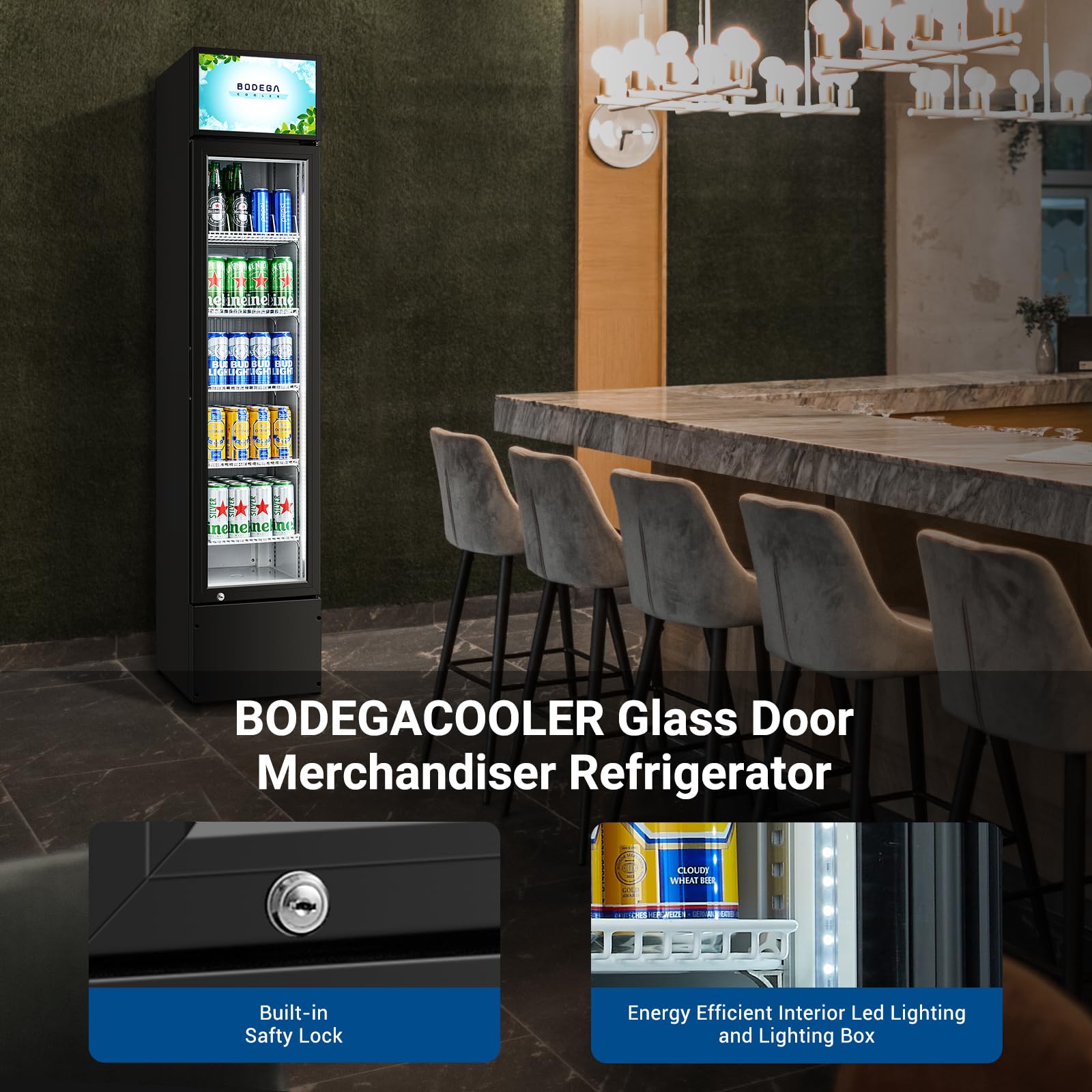 Versatile Merchandising : BODEGACOOLER one-door merchandiser refrigerator serves as a versatile merchandising solution, perfect for showcasing a wide range of products, including commercial beverage refrigerators, display refrigerators, and other commercial refrigerators. Its spacious interior allows for effective product placement and eye-catching displays. 5.7 Cu. Ft Merchandiser Display Refrigerator is perfect for multiple scenarios