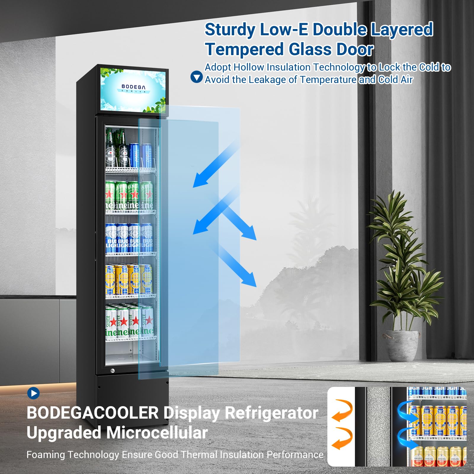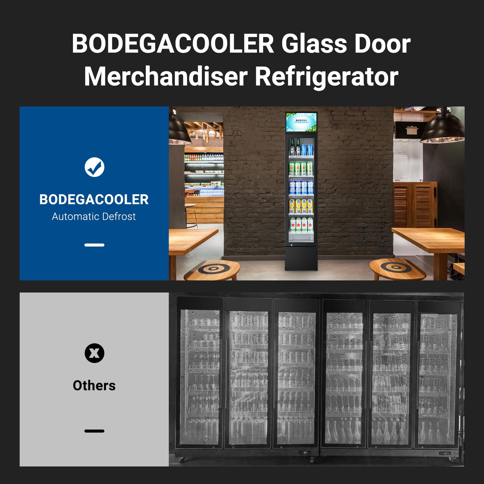 Optimal Visibility with Double-layer Glass Doors : BODEGACOOLER commercial beverage refrigerator featuring glass doors, this commercial display refrigerator ensures optimal visibility of your merchandise. The glass door merchandiser refrigerator enhances product visibility, attracting customer attention and encouraging impulse purchases