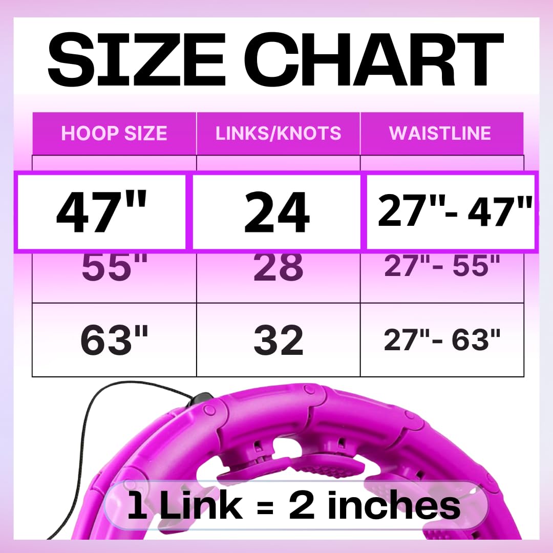 Fits All Sizes And Shapes - Our fitness hoop consists of 24 detachable knots which can be adjusted easily according to your waistline, suitable for waist sizes up to 47 inches.