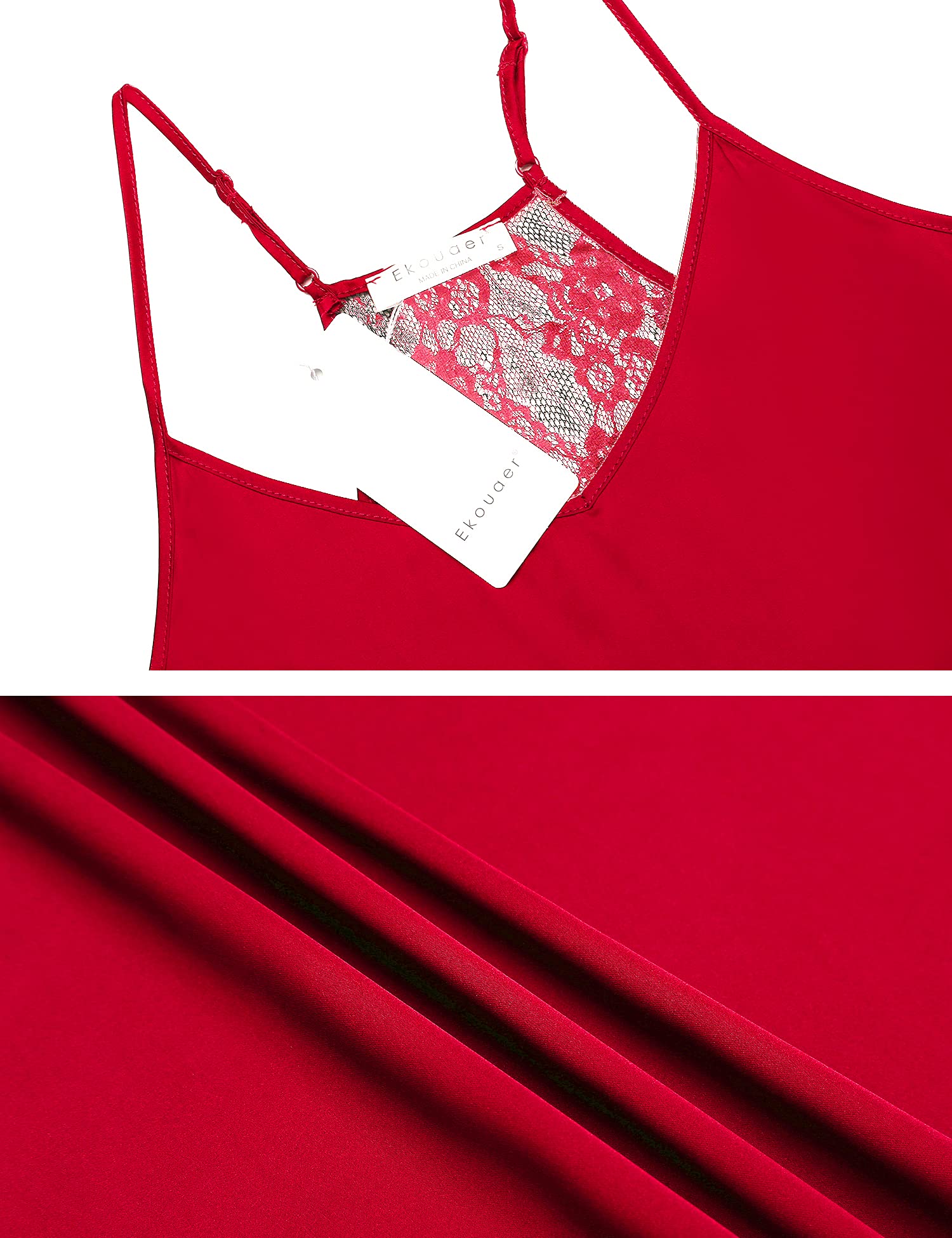 MATERIAL: Ekouaer cami pajama set is made of 95% polyester,high-quality satin fabric give your skin like baby care,ultra-comfortable satin material make you sleep well