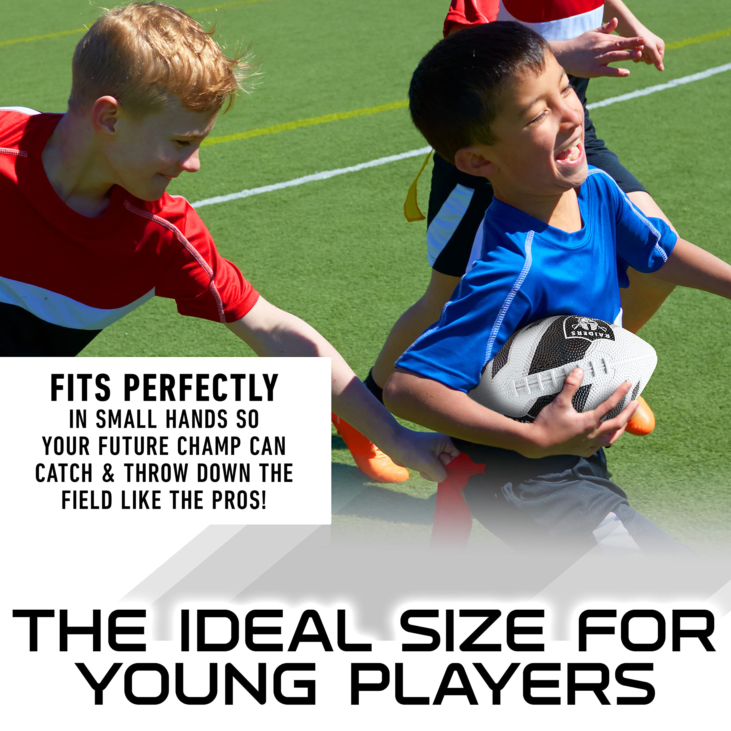 PERFECT FOR KIDS: This 8.5" mini football is the ideal size to fit in a young players hands so your future champ can catch and throw down field like the Pros!