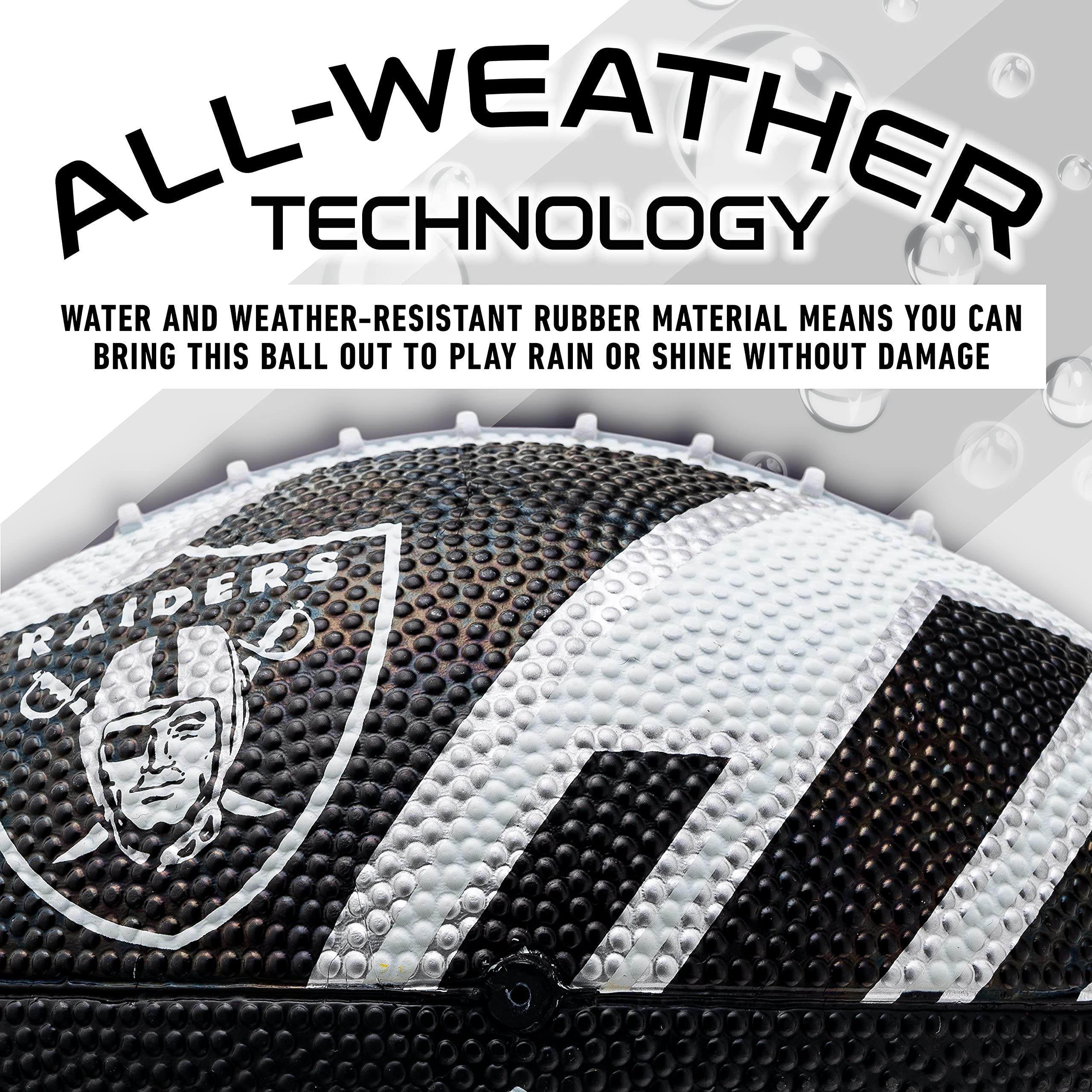 LAS VEGAS RAIDERS FOOTBALL: This rubber mini football is constructed from durable rubber so you can keep the fun going at your tailgates, the beach, the backyard for countless hours!
