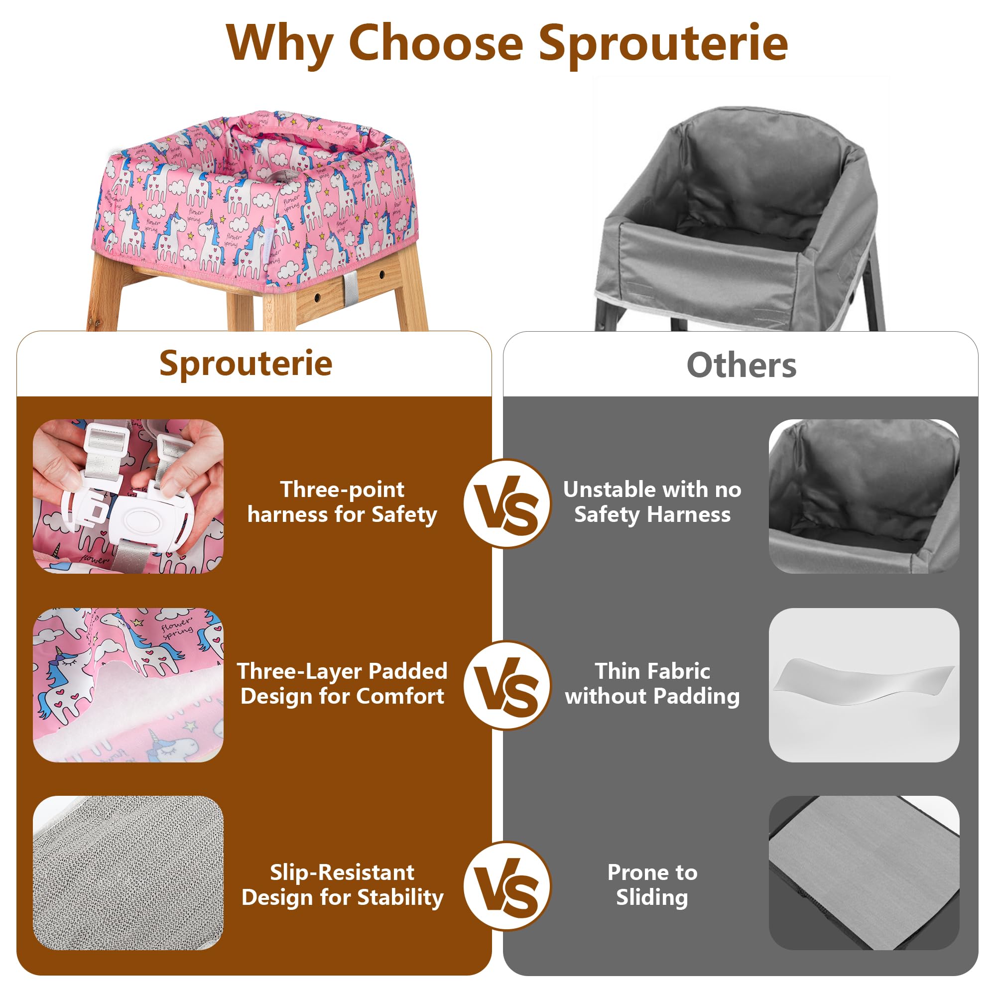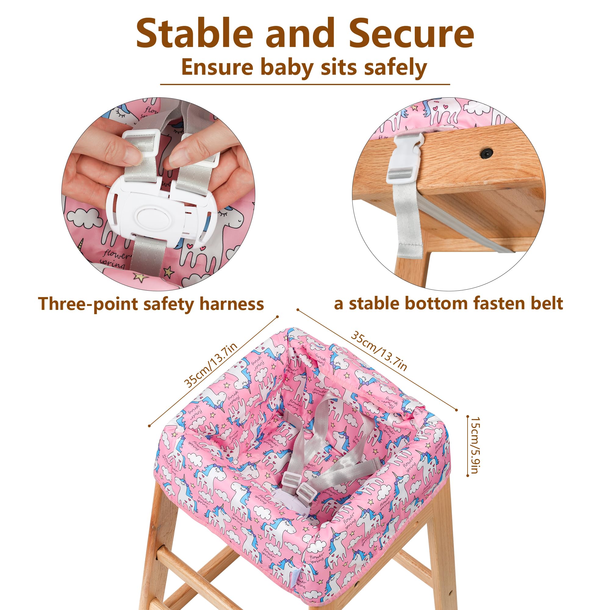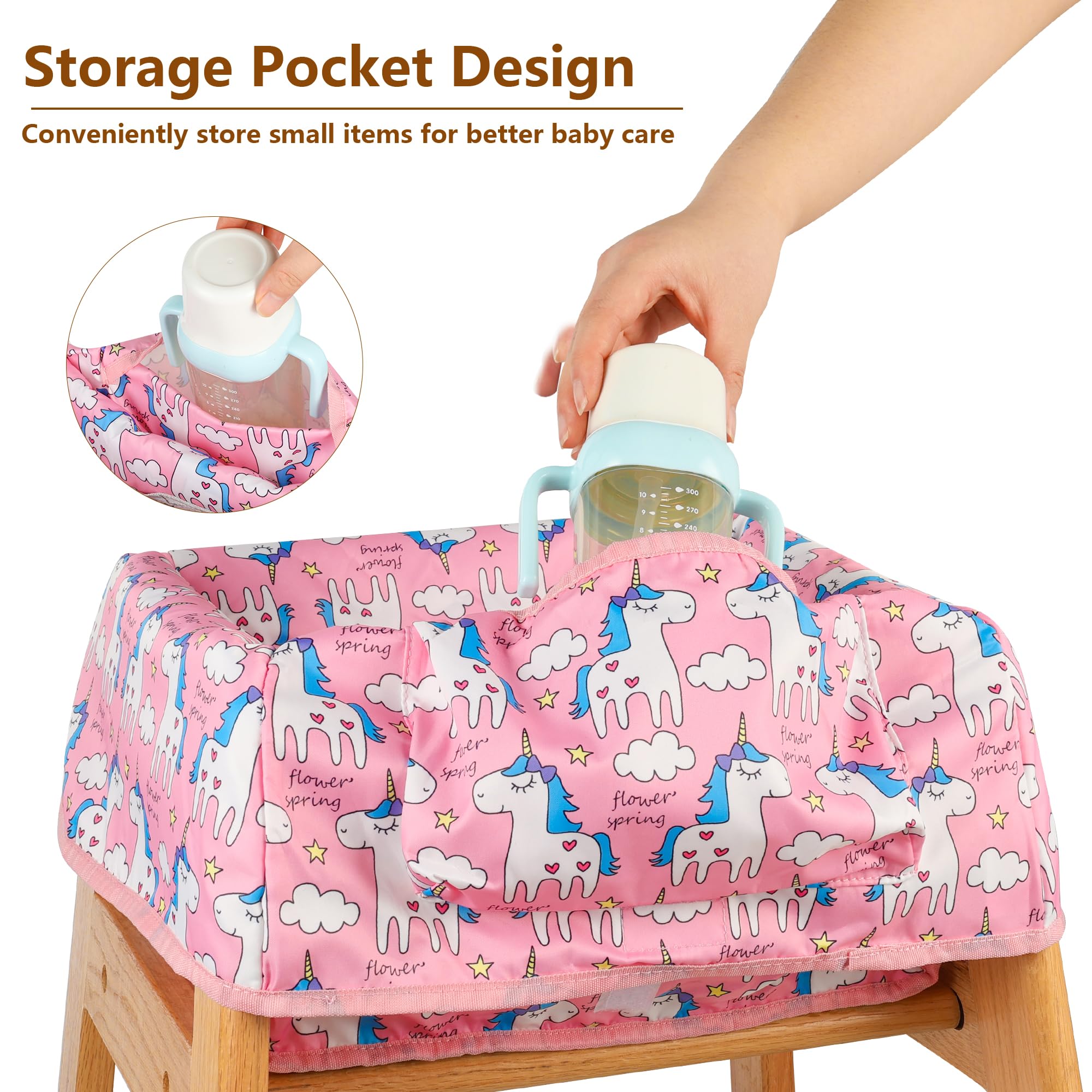 High Chair Cover for Baby Restaurant: Sprouterie Baby High Chair Covers for Restaurant Highchair with Safety Harness Stain and Slip Resistant Waterproof Portable for Outdoor Indoor Eating (Pink)