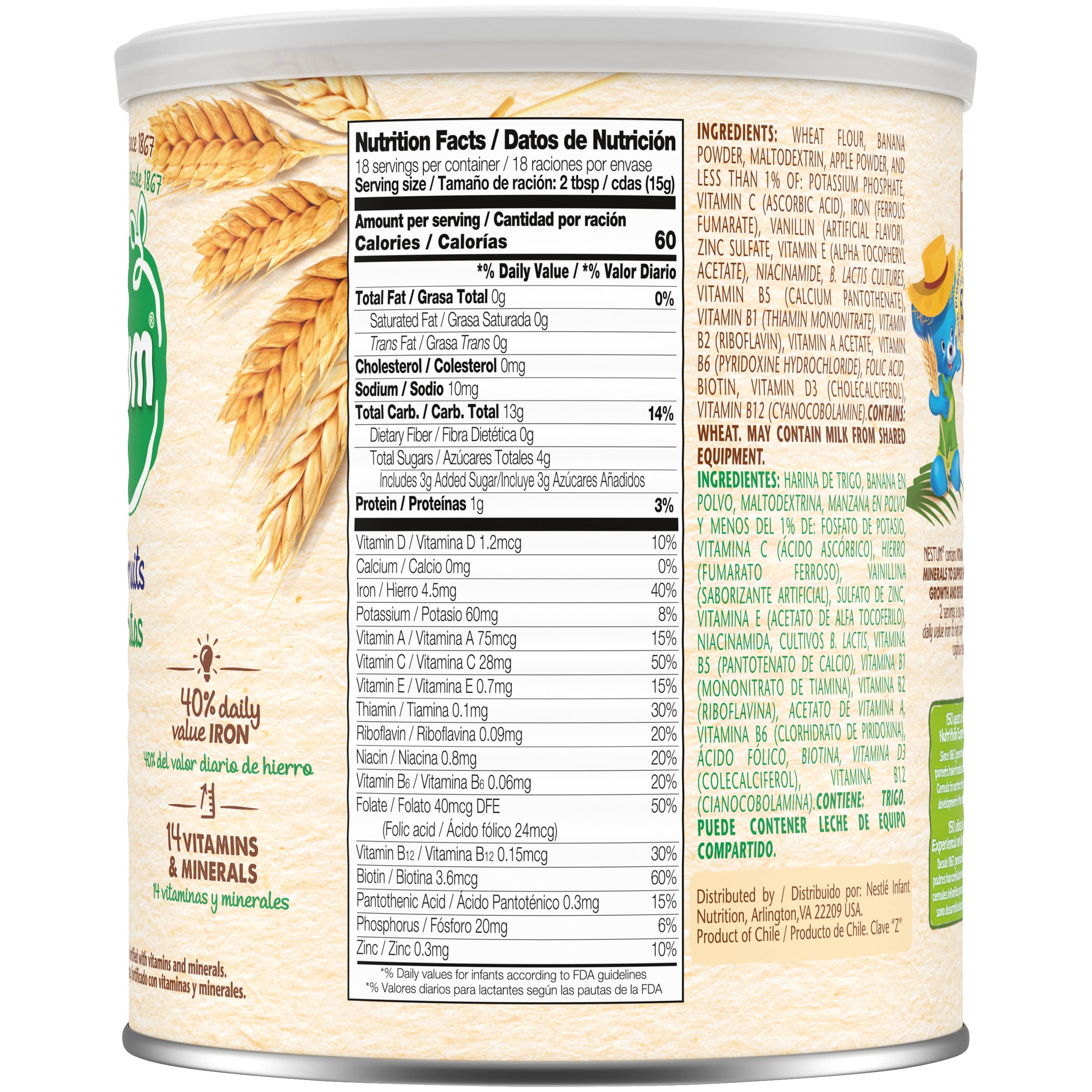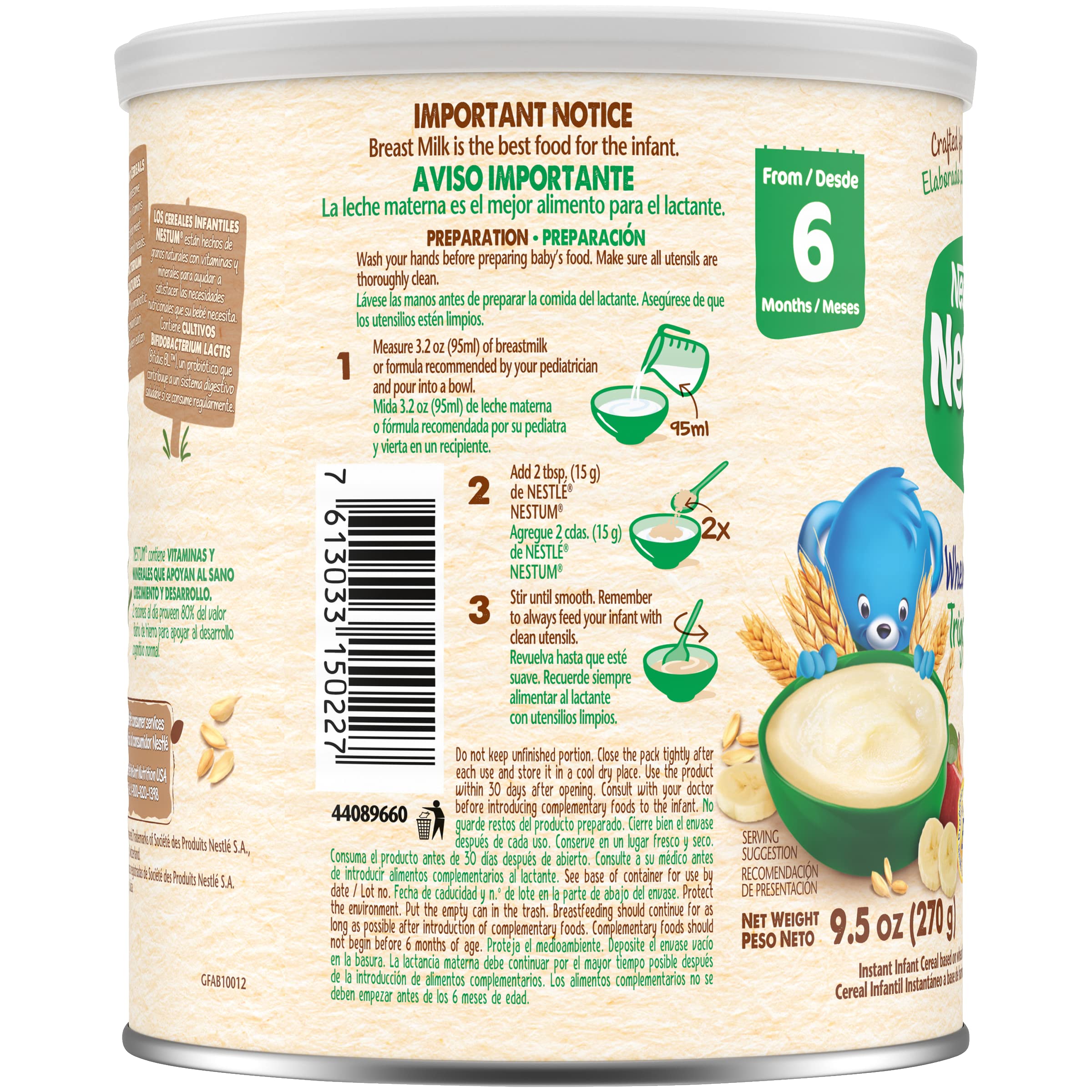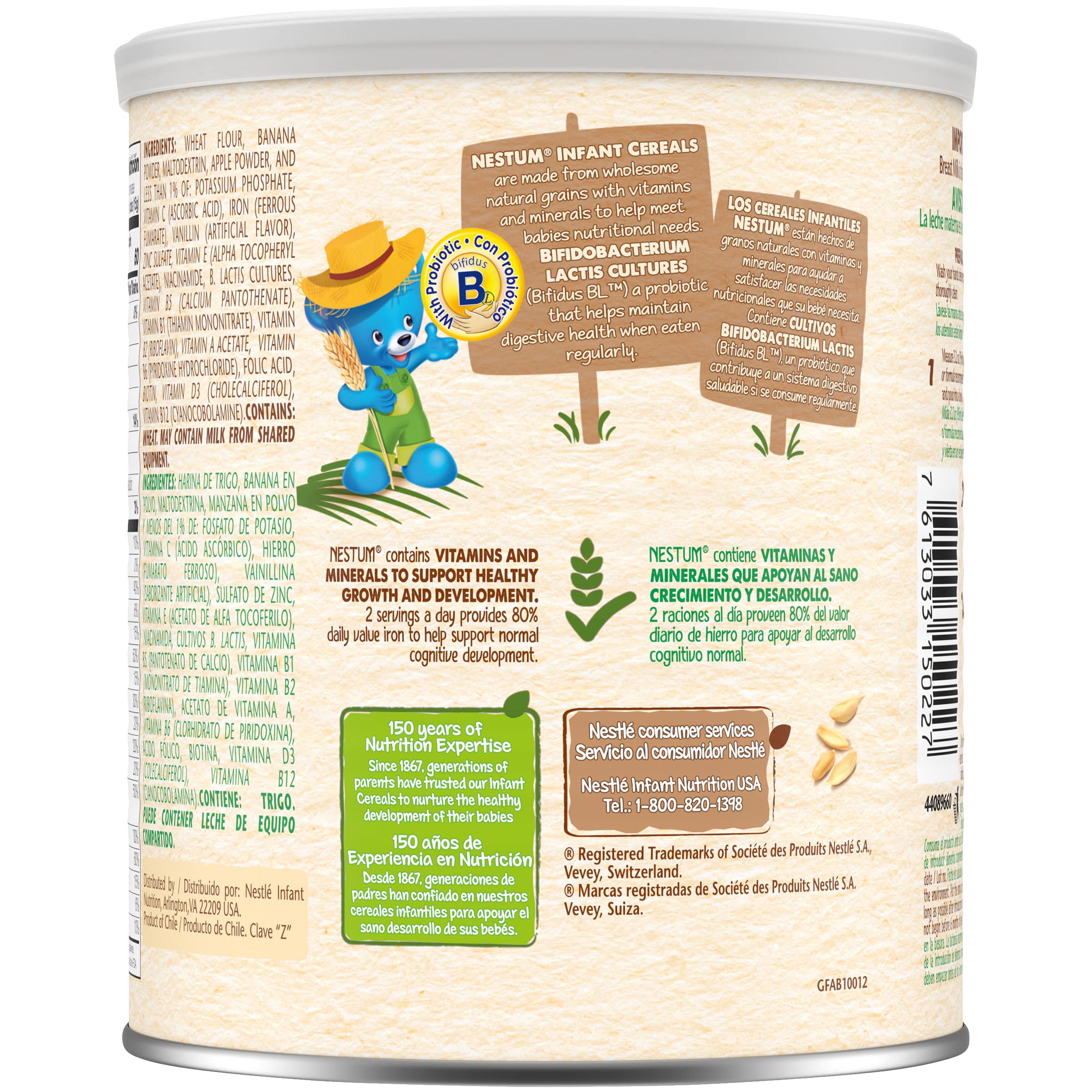 Nestle Nestum Infant Cereal, Wheat & Honey, 10.6 Ounce Canister: Crafted with delicious ingredients to help your little one blossom. This Nestum cereal contains carefully selected grains with 12 vitamins and minerals and 60% daily value of Iron. Great to help support healthy development for your baby. Nestum is made with wholesome grains and vitamins and minerals to support healthy growth, including iron to help support brain development and learning ability. Our cereals are made with wholesome ingredients. Also, they are easy to prepare for a satisfying cereal for your little one. With a range of cereals made for little ones from 6-12+ months, there’s a Nestum product to help nourish little tummies of all ages. This Nestum cereal is made for babies 12+ months.