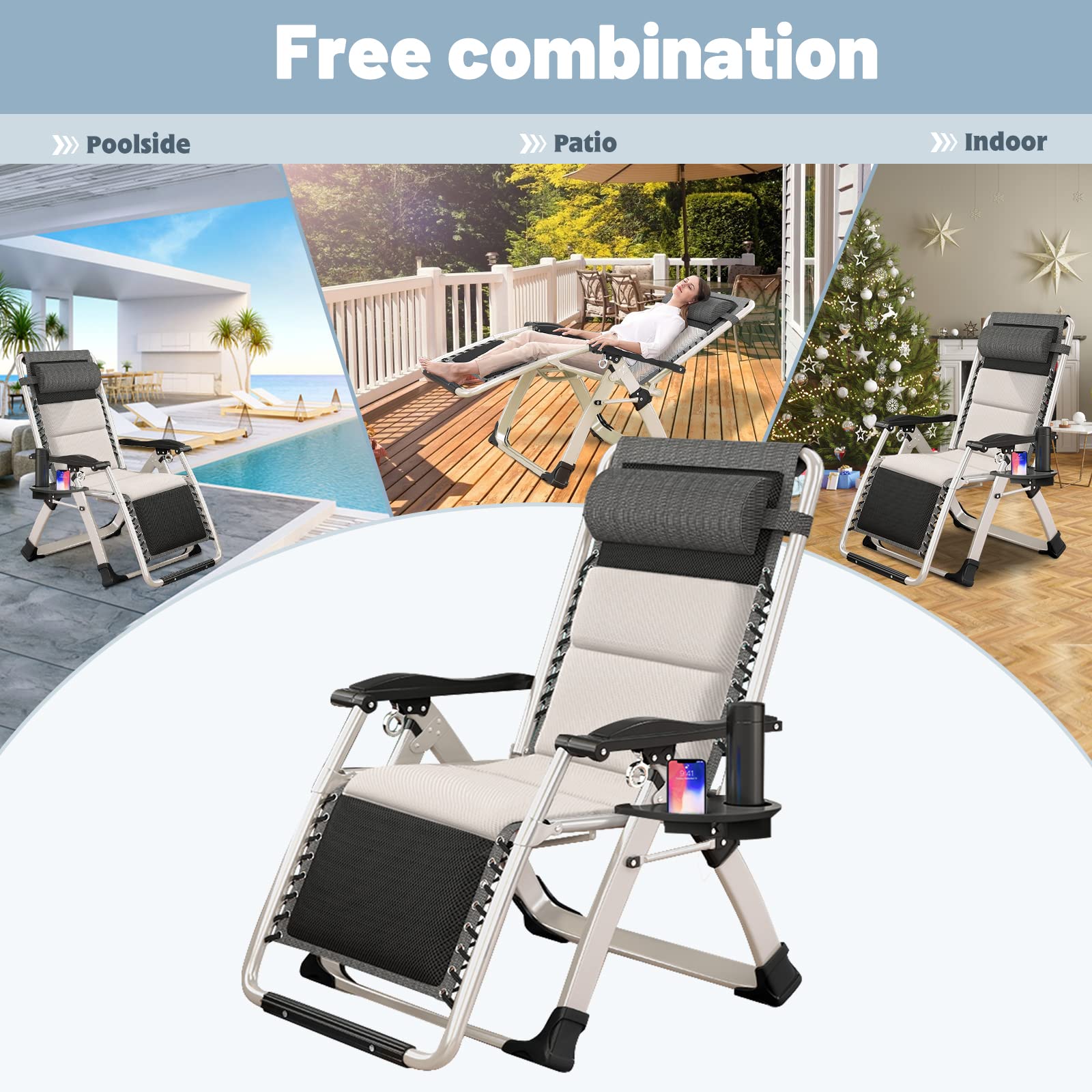 Comfortable Design: The outdoor zero gravity lounge chair is designed to satisfy your ultimate comfort. The armrest of folding lounge chair is thick and contoured. It will serve you whether sitting or lying, outdoor and indoor. Our recliner chair comes with a thick and soft pad