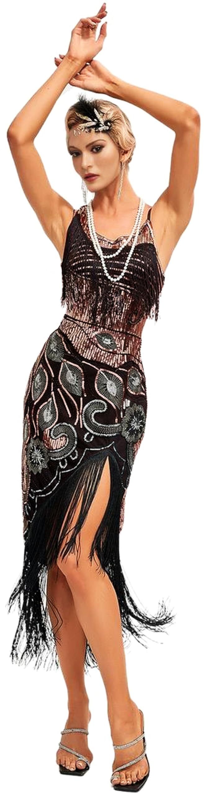 Exquisite Peacock-Inspired Design: Our 1920s Beaded Flapper Sling Dress is intricately adorned with stunning beadwork and embellishments, reminiscent of the majestic beauty of peacocks. The design captures the elegance and grace of the peacock feathers, making it a truly unique and eye-catching dress.