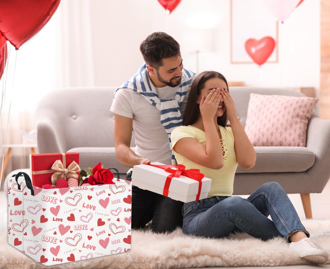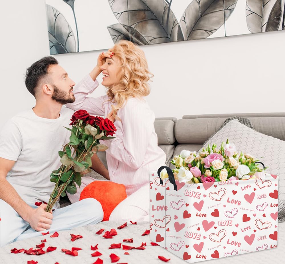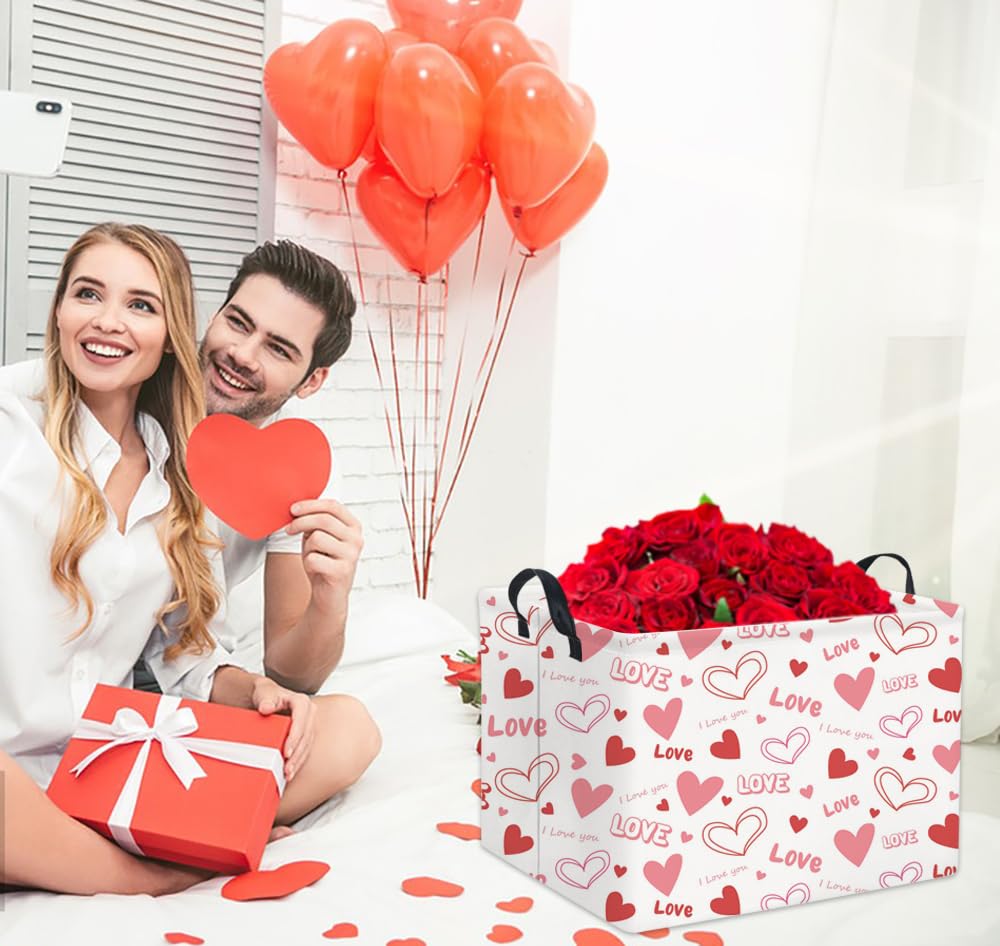 MATERIAL:The valentines day basket basket is made of durable canvas &The inner lining is made of waterproof fabric; sturdy metal rod frame around the top keep the basket shape.