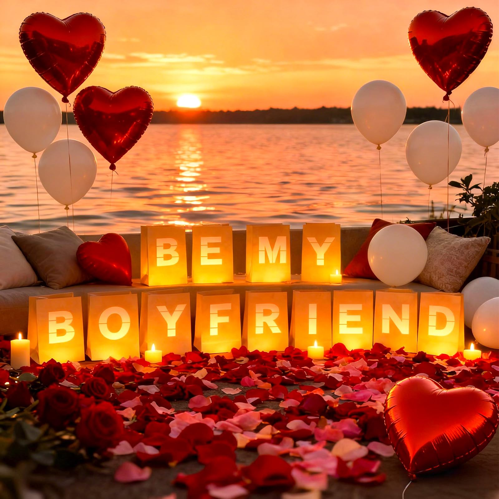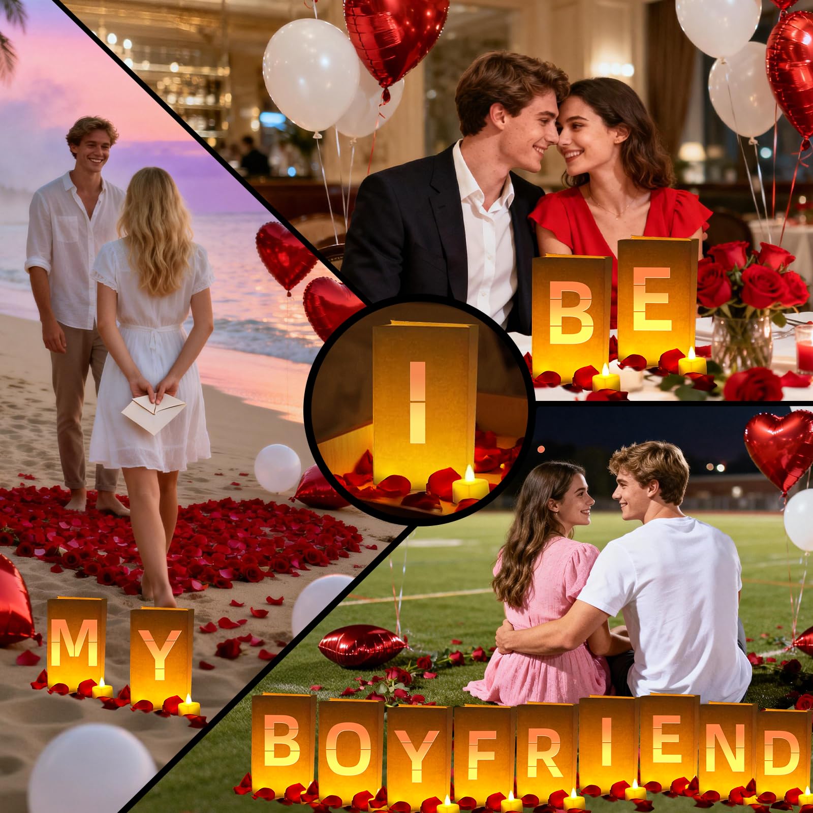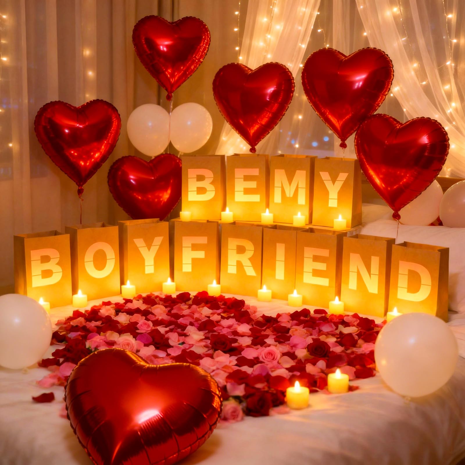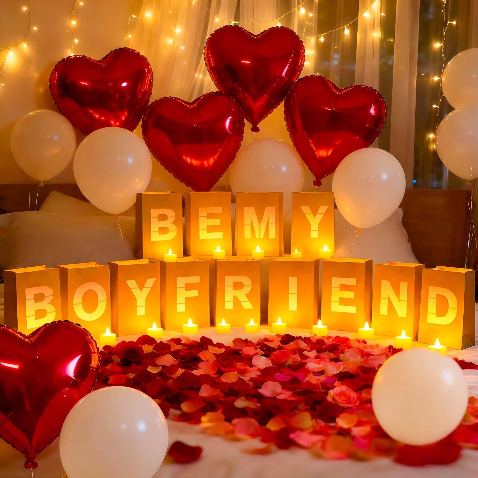 Wide Application: Our candle luminary bag decoration kit is versatile and suitable for various venues, whether it's your living room, hotel, waterfront, or bedroom. Illuminate any confession decor with these captivating "Be My Boyfriend" lights, adding a touch of romance and sophistication to your special moment.