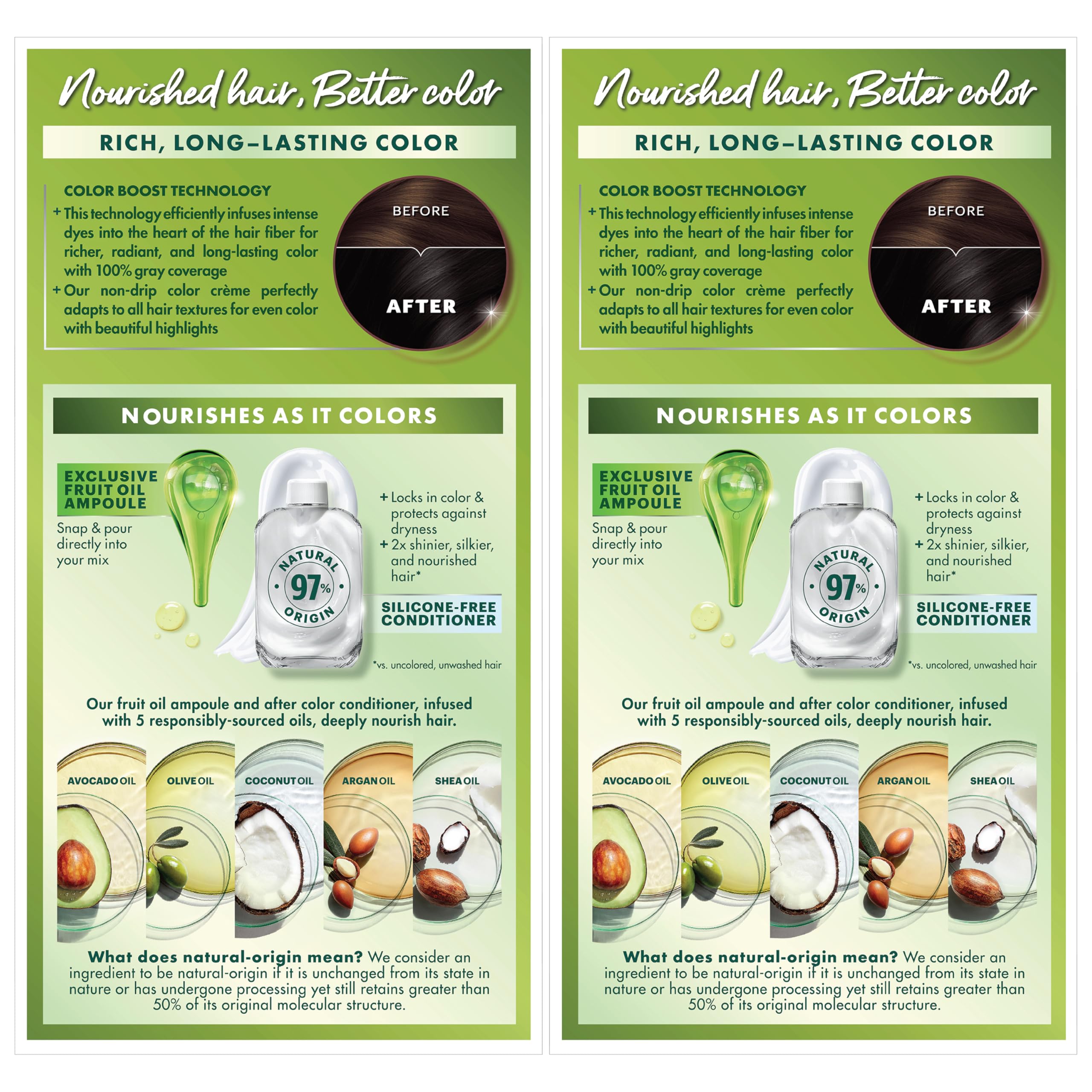 Hair Dye Kit: The only hair color with a separate fruit oil ampoule that you snap & pour directly into the mix; Follow hair dye with our after color hair conditioner, infused with a blend of 5 fruit oils: avocado, olive, shea, argan & coconut oil