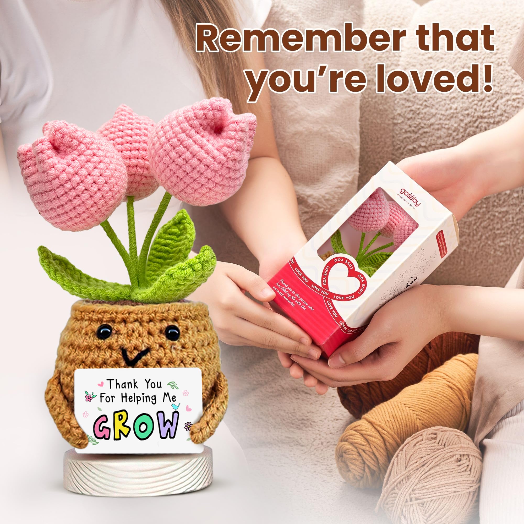 🌟Multi-functional: This heartwarming wool crochet plant, paired with an uplifting emotional card, is a versatile decor piece for both home and car. Perfect for a desk or dashboard, it's a truly thank you gift that anyonewill adore and treasure.