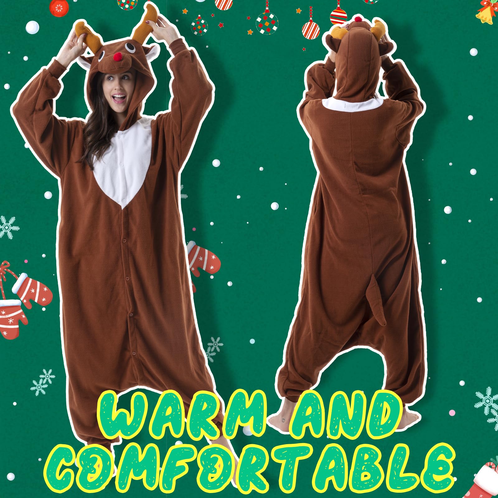 INSIDE DESIGN: Reindeer onesie is buttoned up and closed, different styles will have different tails and wings, the cuffs and pants are designed with cotton elastic thread to keep you warm and comfortable; two invisible pockets on the side, easy to carry keys, cell phone, wallet and other daily necessities.