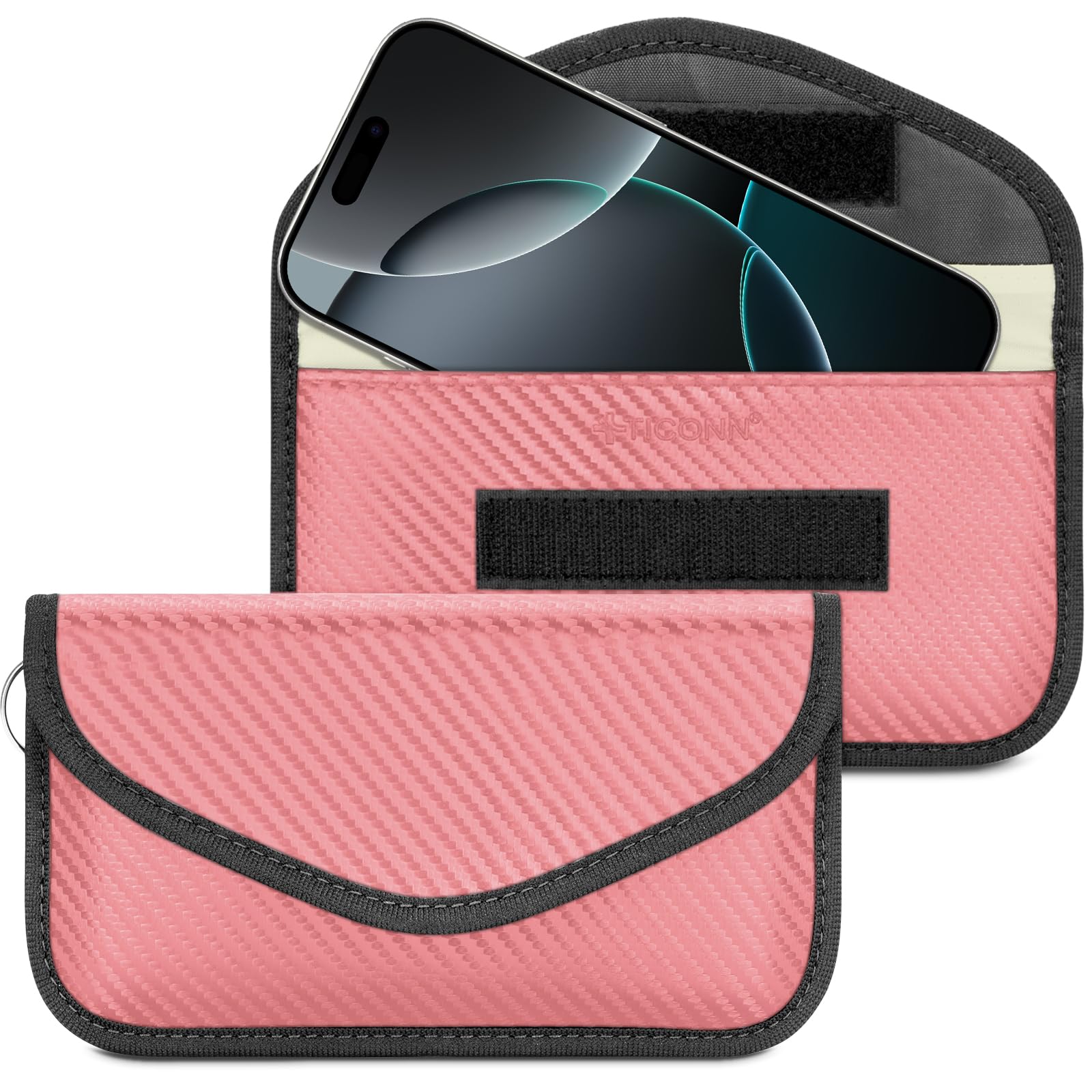 Premium Quality: TICONN Faraday bag features premium carbon fiber-textured material with dual-layer shielding that blocks WiFi, Bluetooth, GPS, RFID, NFC, and car key fob signals while providing water resistance; It is packaged in a gift box, making it a stylish and luxurious gift